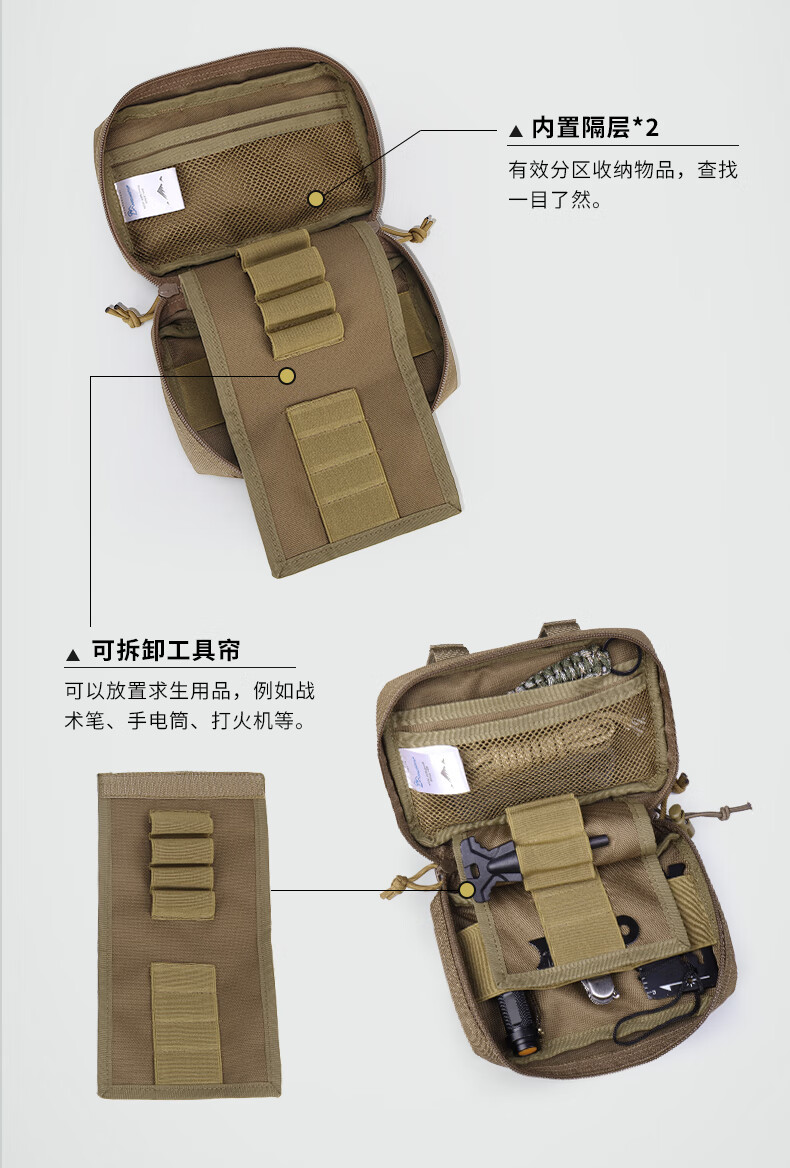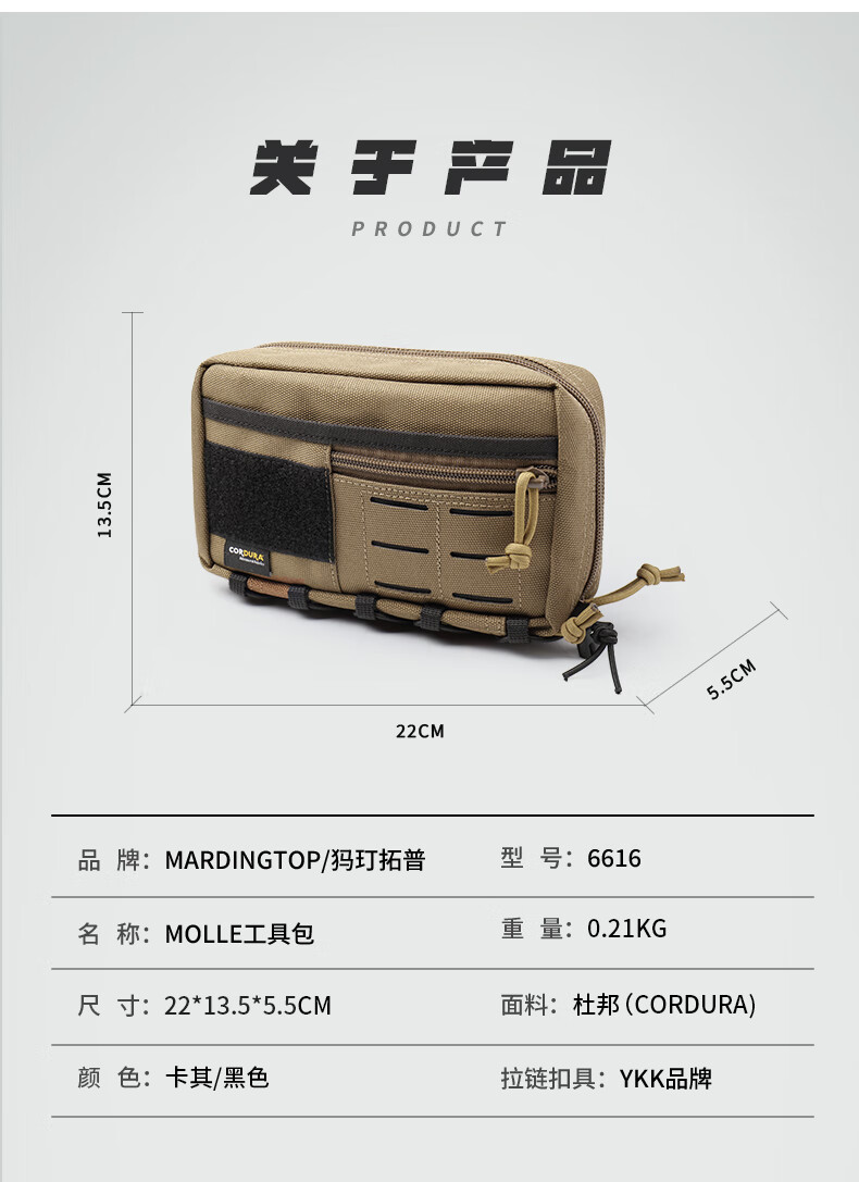 MARDINGTOP登山露营运动徒步多功能外挂战术molle配件包工具拓展包副包 卡其色
