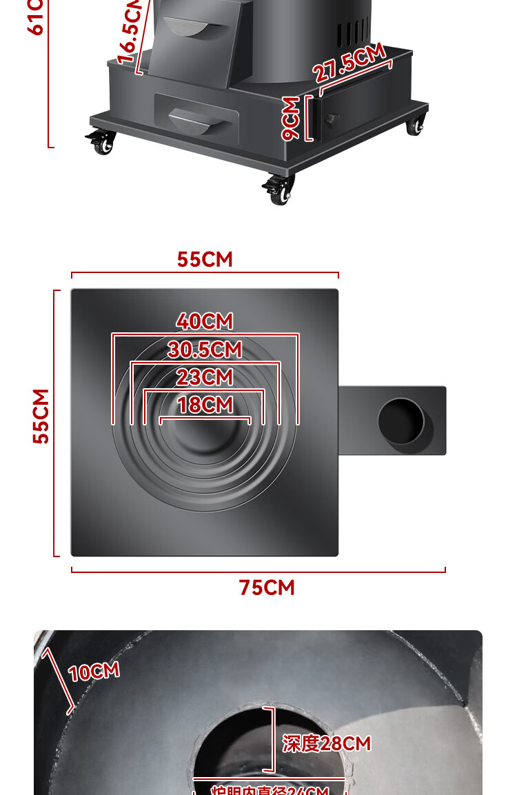 无烟气化新款炉子家用烧煤烧柴气化炉新款取暖做饭一体炉二次反烧 圆形款多功能气化反烧取暖做饭炉