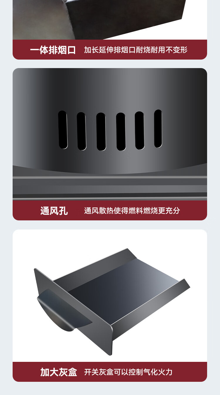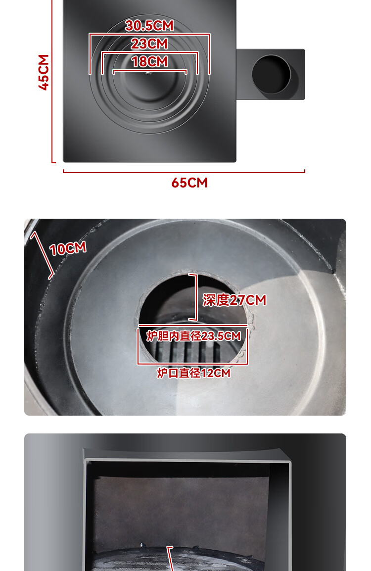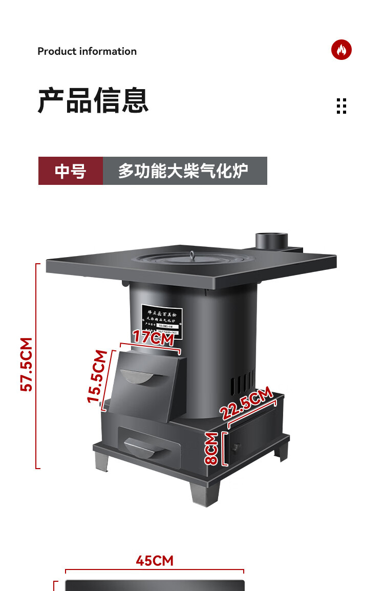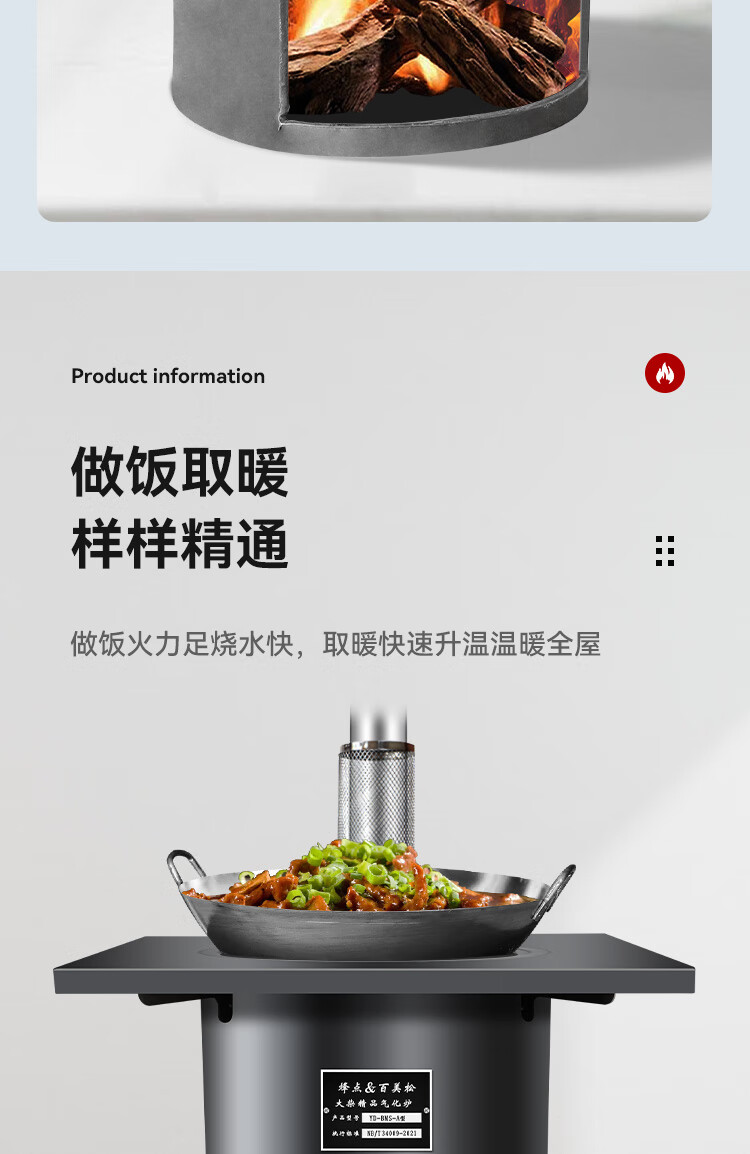 烽点柴火灶农村家用烧木柴气化炉取暖炉冬季室内无烟烤火大添柴口锅台 大号大柴气化炉+3米烟管配件