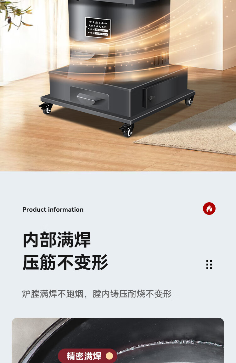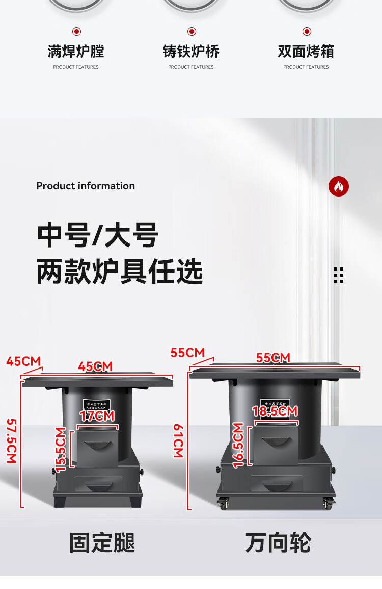 好厨官(包送到家)气化炉无烟汽化炉农村烤火炉柴火取暖炉桌子家用 1.2米长方形黑岩纹(柴煤两用)