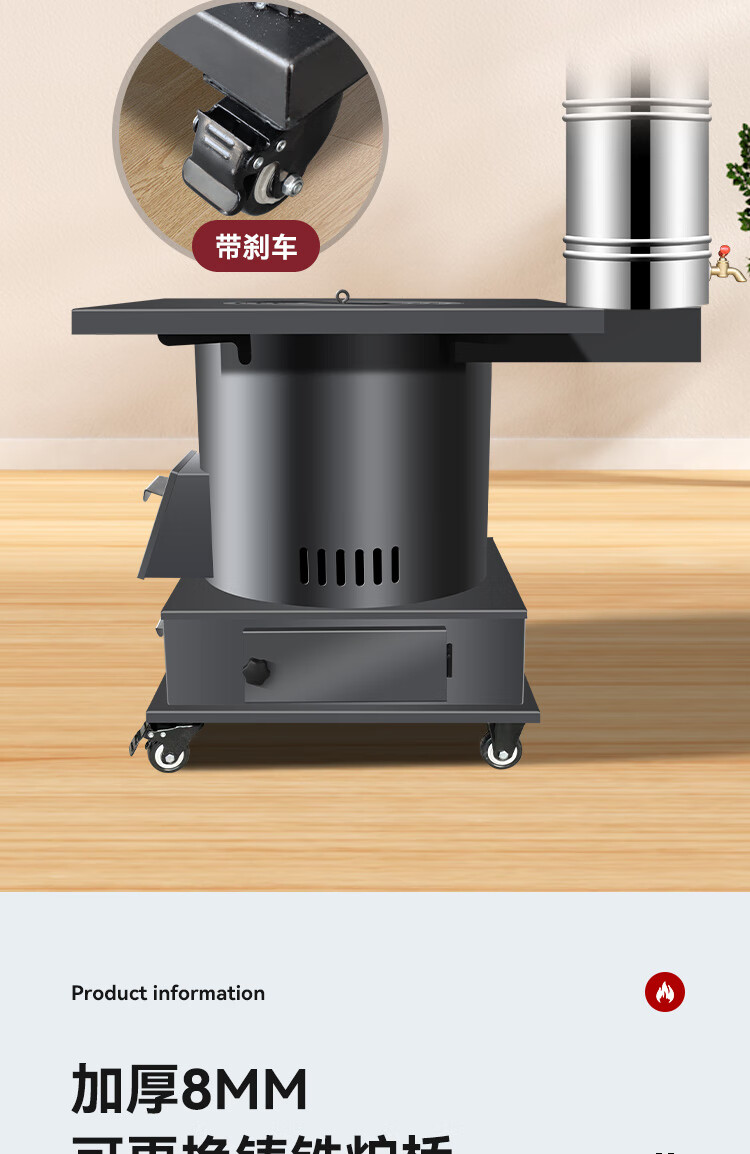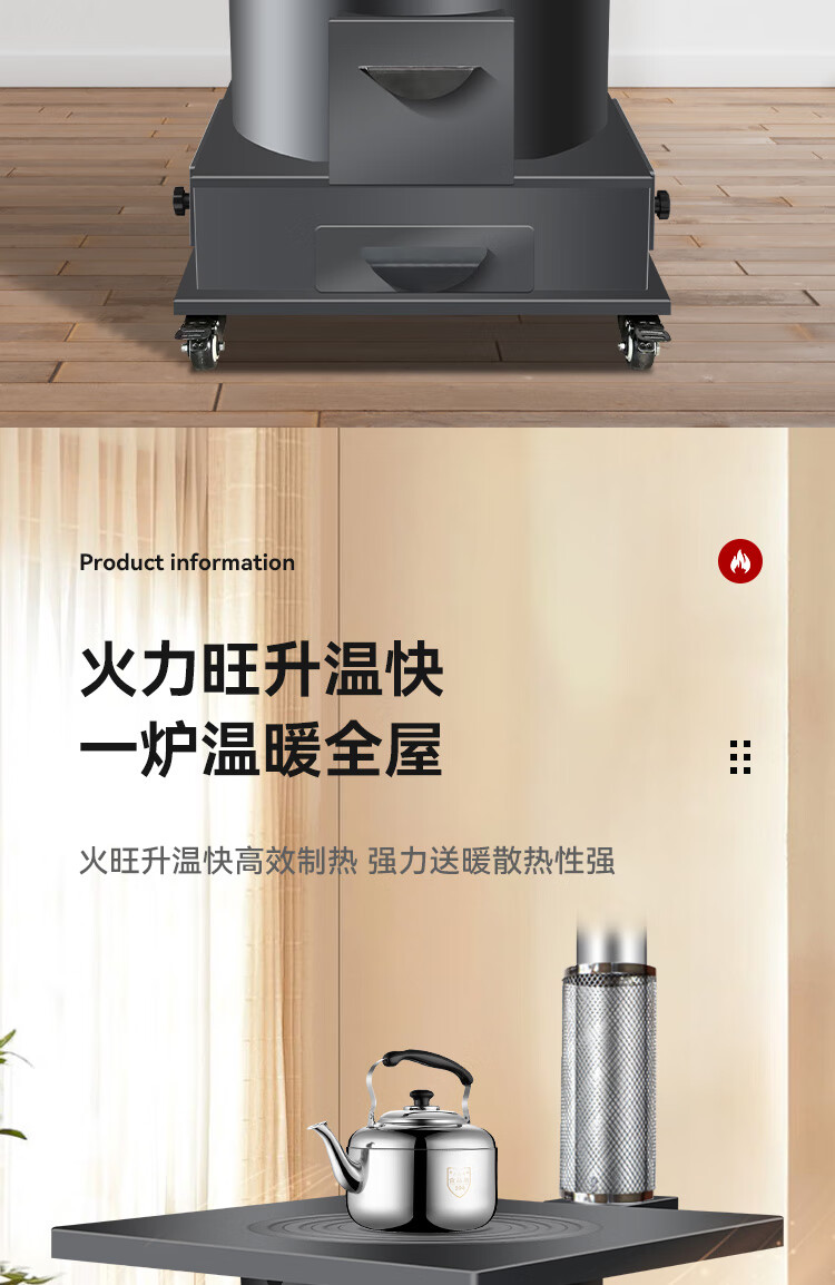 柴煤两用气化取暖炉柴火灶家用烧木柴农村室内无烟移动大锅灶台 气化炉带轮款带4米烟管+2个弯头