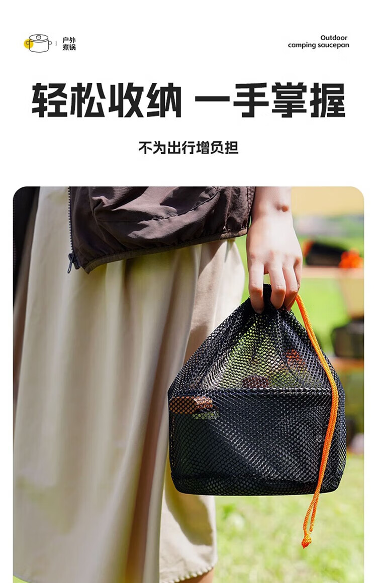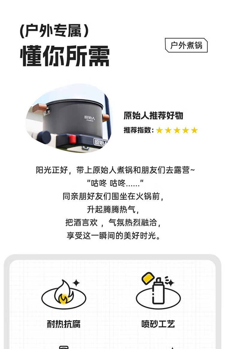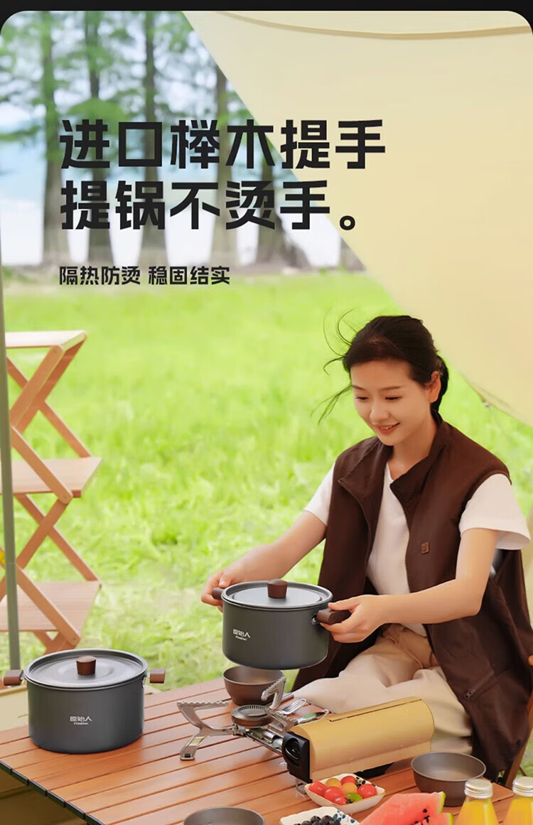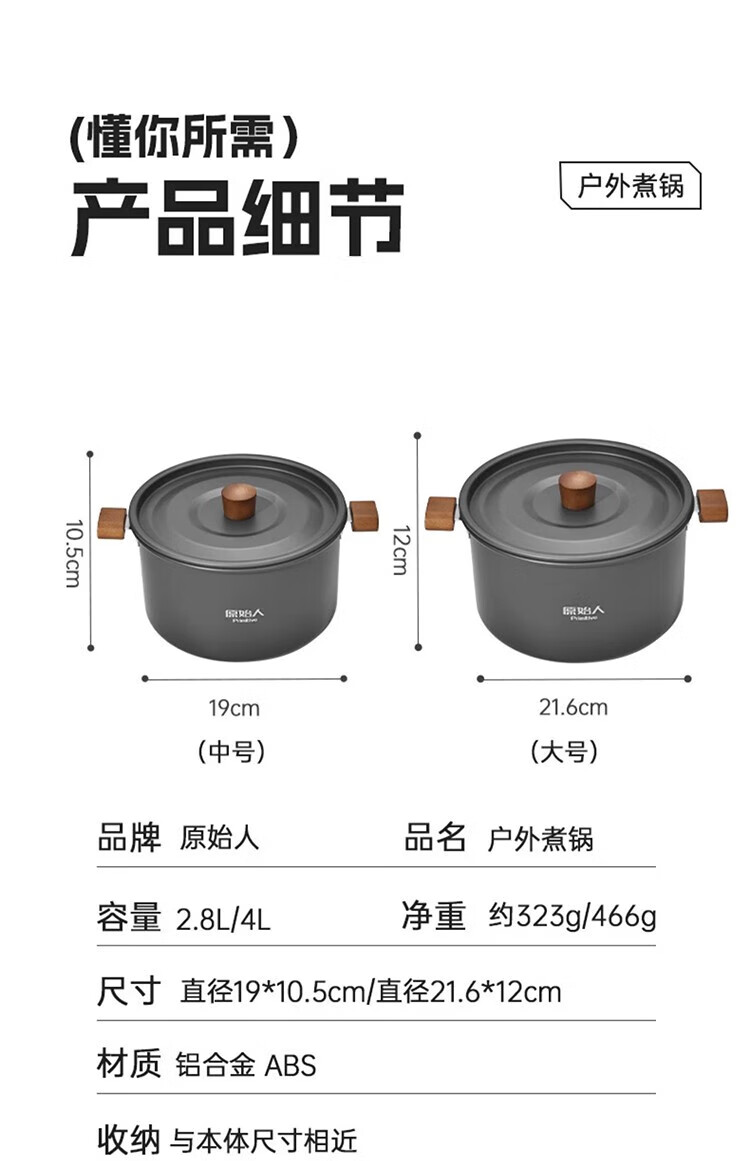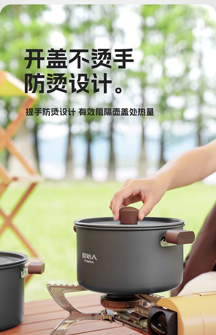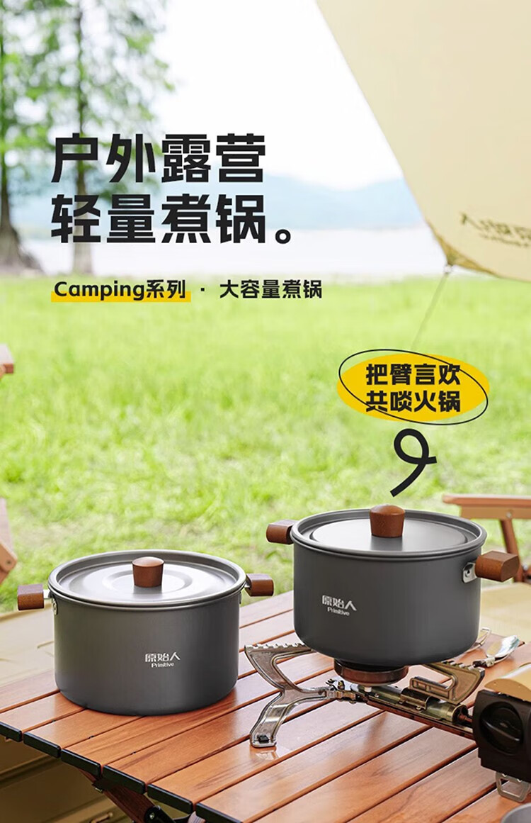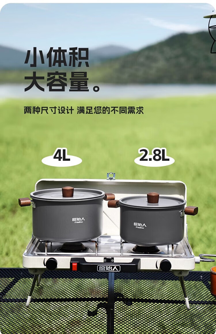 原始人户外锅具炊具露营野炊装备露营锅具便携煮锅套锅野餐锅 4L煮锅