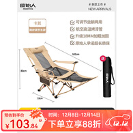 原始人户外躺椅折叠露营便携家用户外钓鱼椅午休靠背椅超轻钓鱼椅沙滩椅 加长款网纱卡其-带拆卸脚托