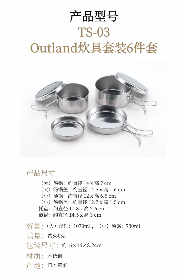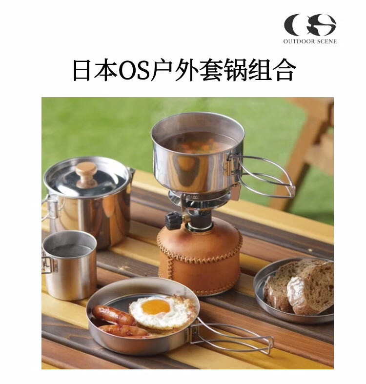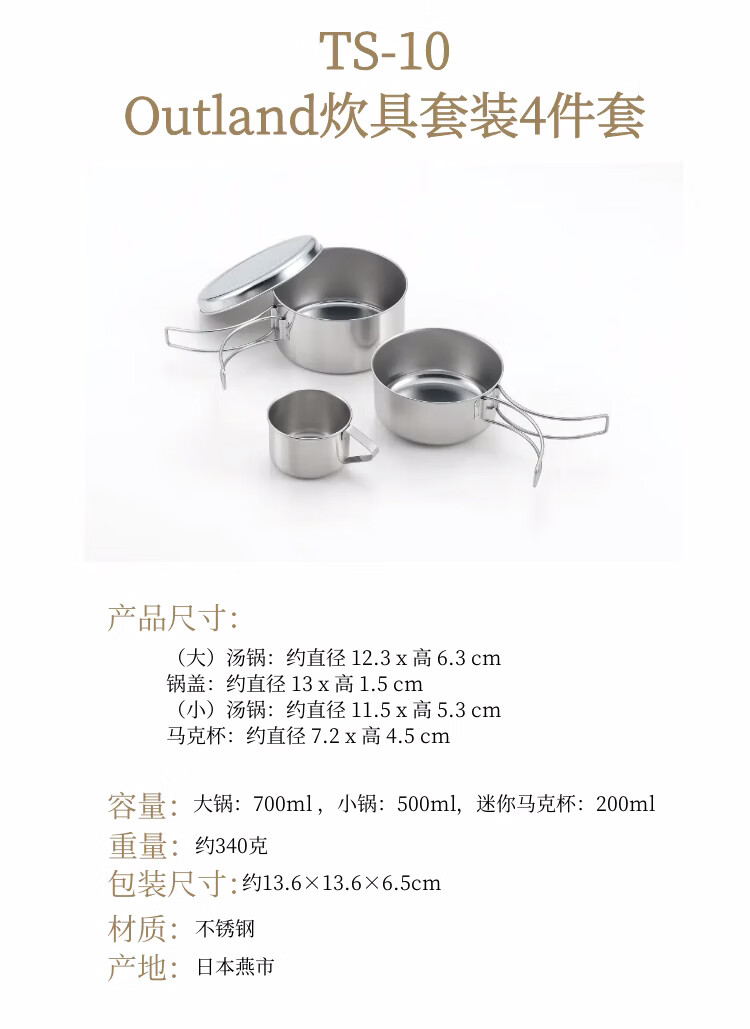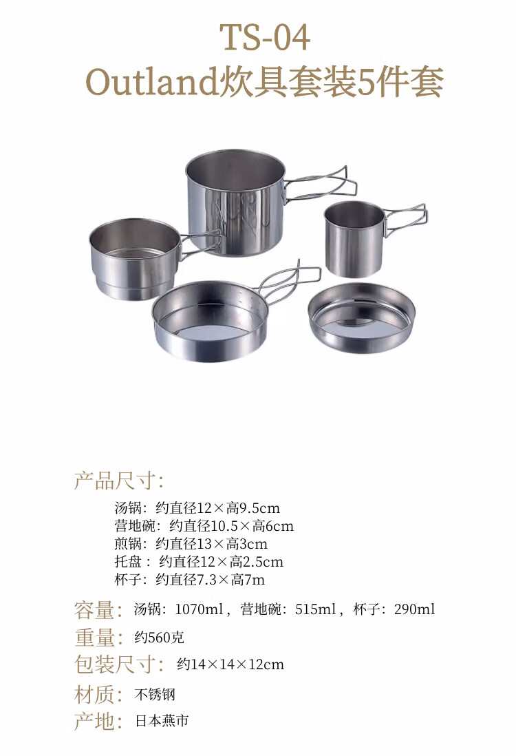 BK日本OS个人锅具组户外露营野餐便携炊具组不锈钢煎锅煎盘杯子 TS-10四件套