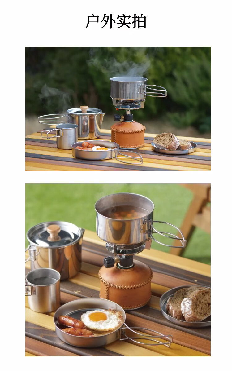 爱加芬户外不锈钢套锅露营便携自驾游烧水壶煮汤锅不粘煎盘野营锅具 木柄2+1套锅