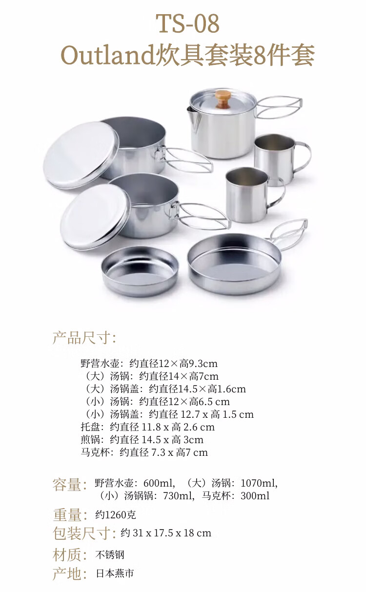 岛奇(Daoqi)户外锅具304不锈钢露营野炊装备全套套锅野营野外煮饭用品 户外锅具8件套(复合底)