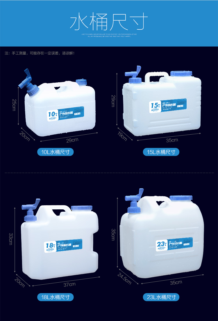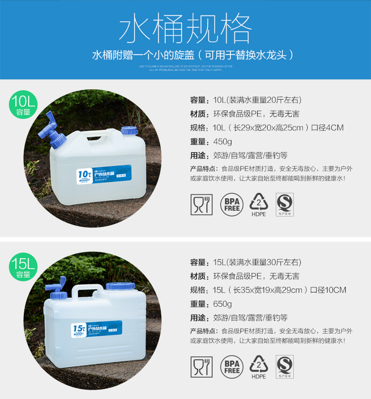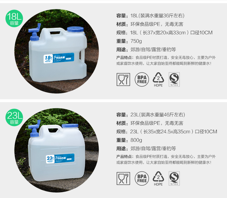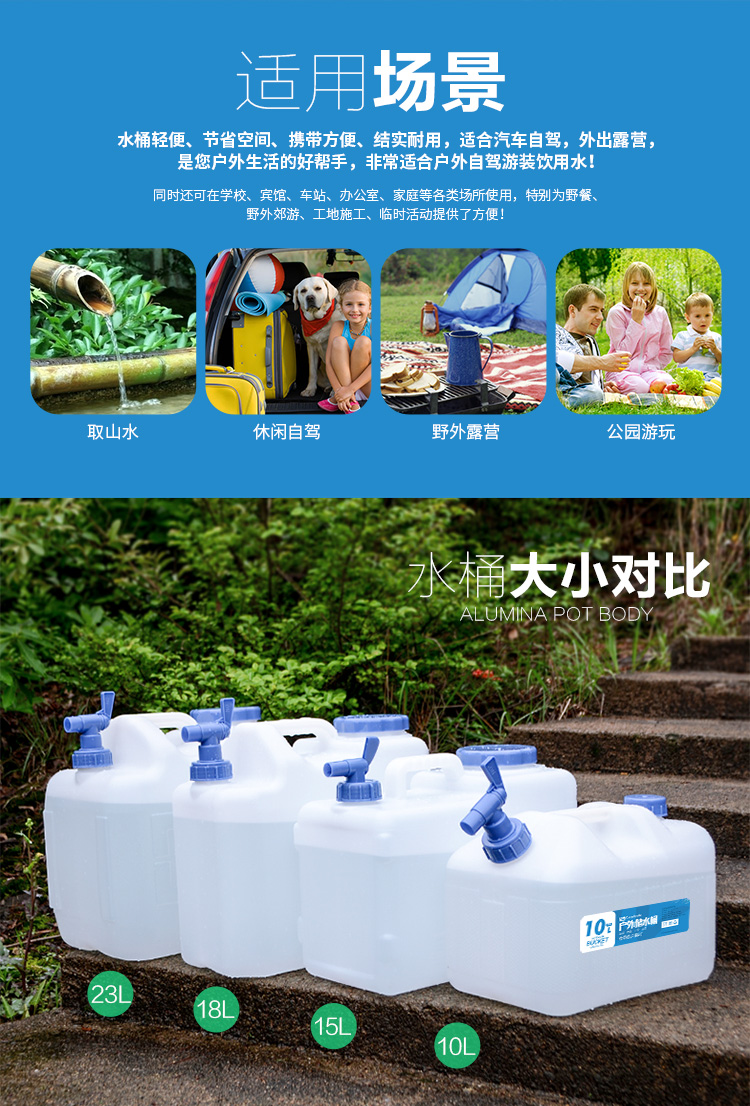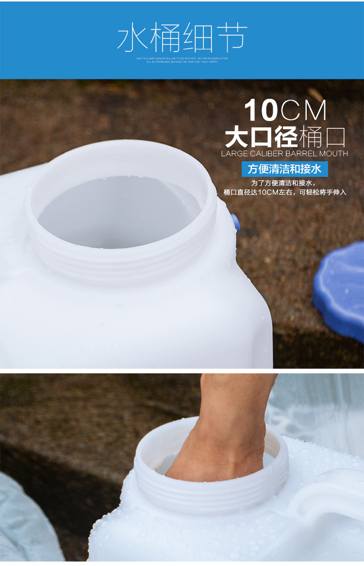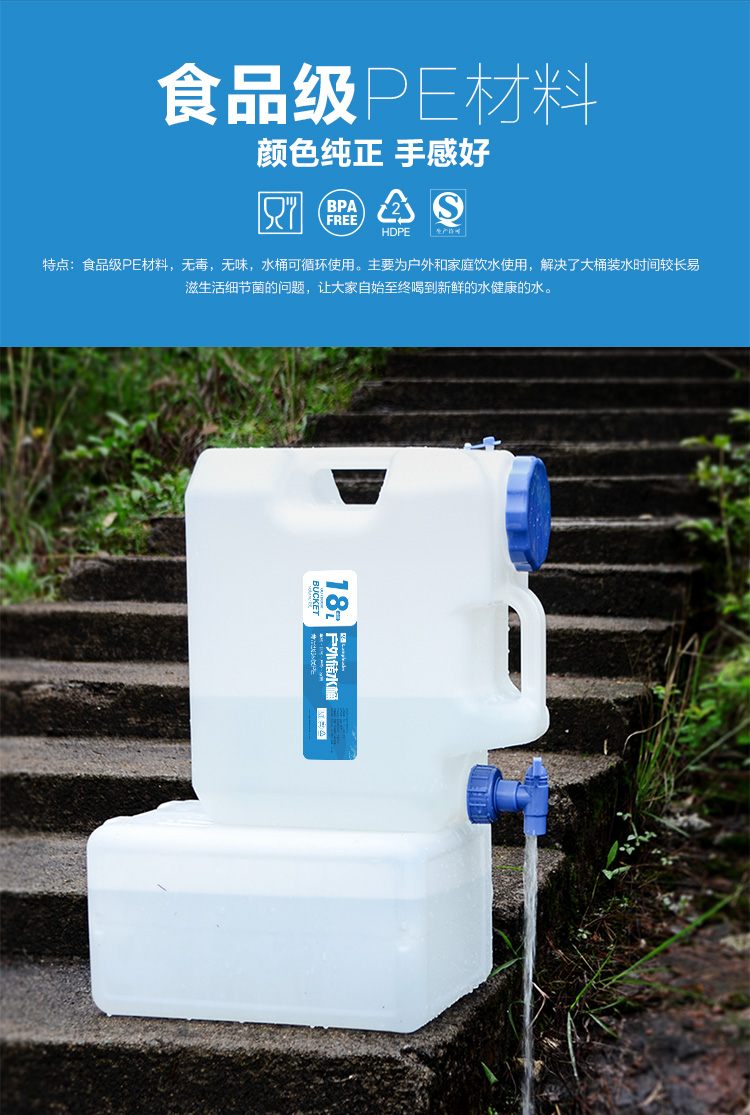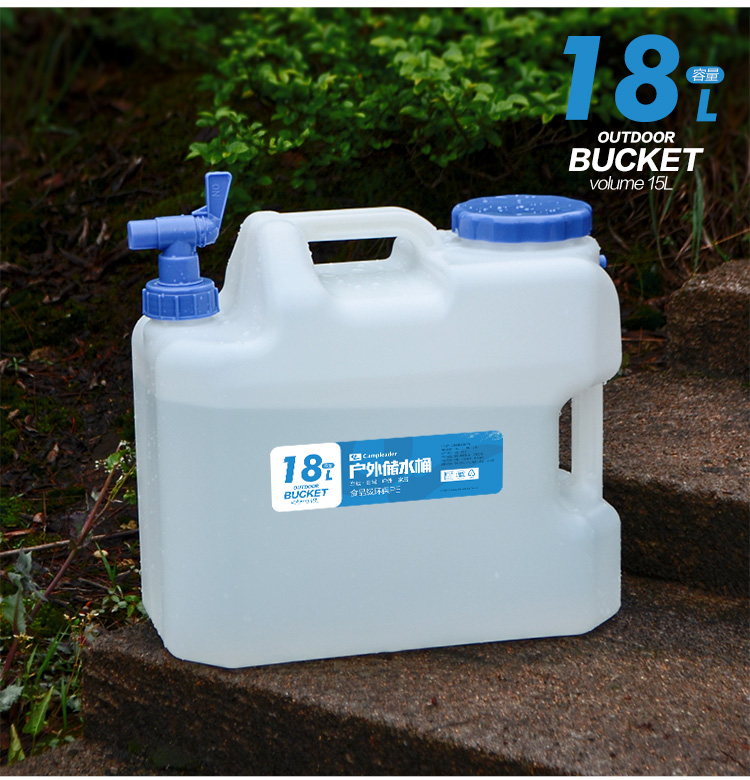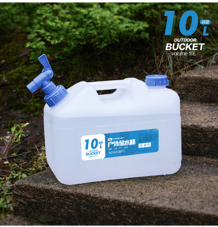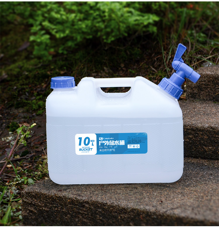 CAMPSOR户外水桶自驾游PE大水桶野营储水器食品级水袋10L15L18L23L车载饮 10升-小口配龙头替换盖