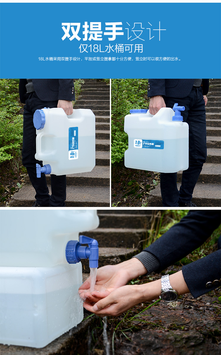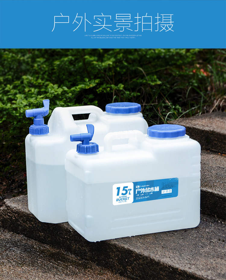 竞洲户外PE食品级纯净储水桶带龙头家用茶道车载自驾游露营饮用蓄水桶 15升食品级PE水桶