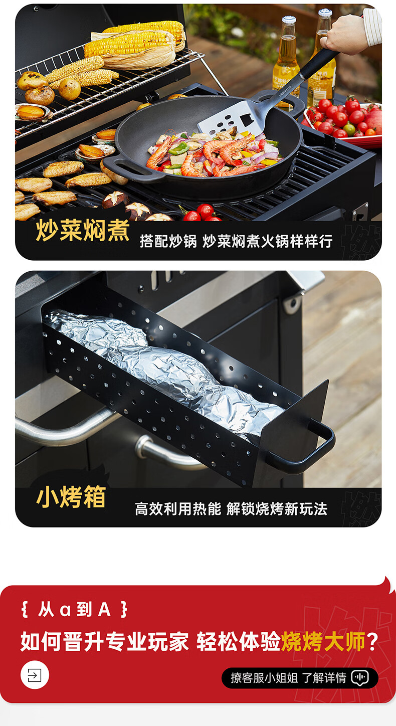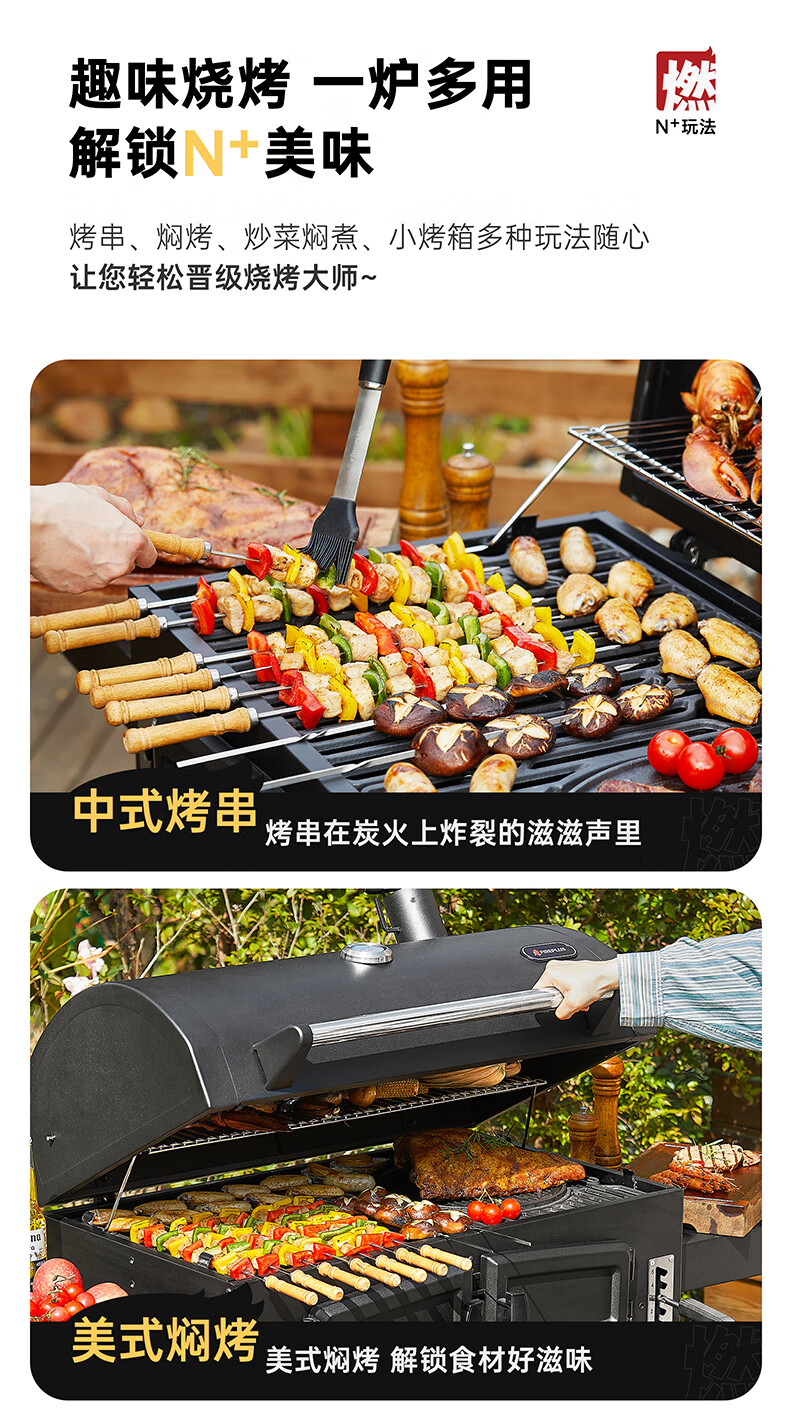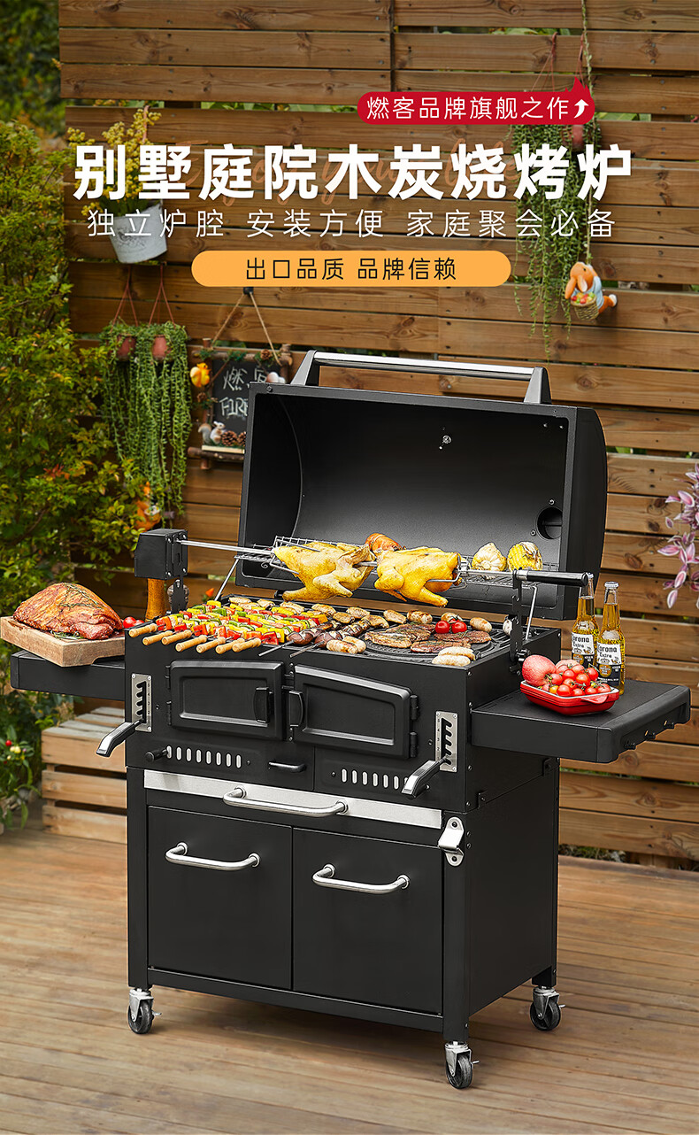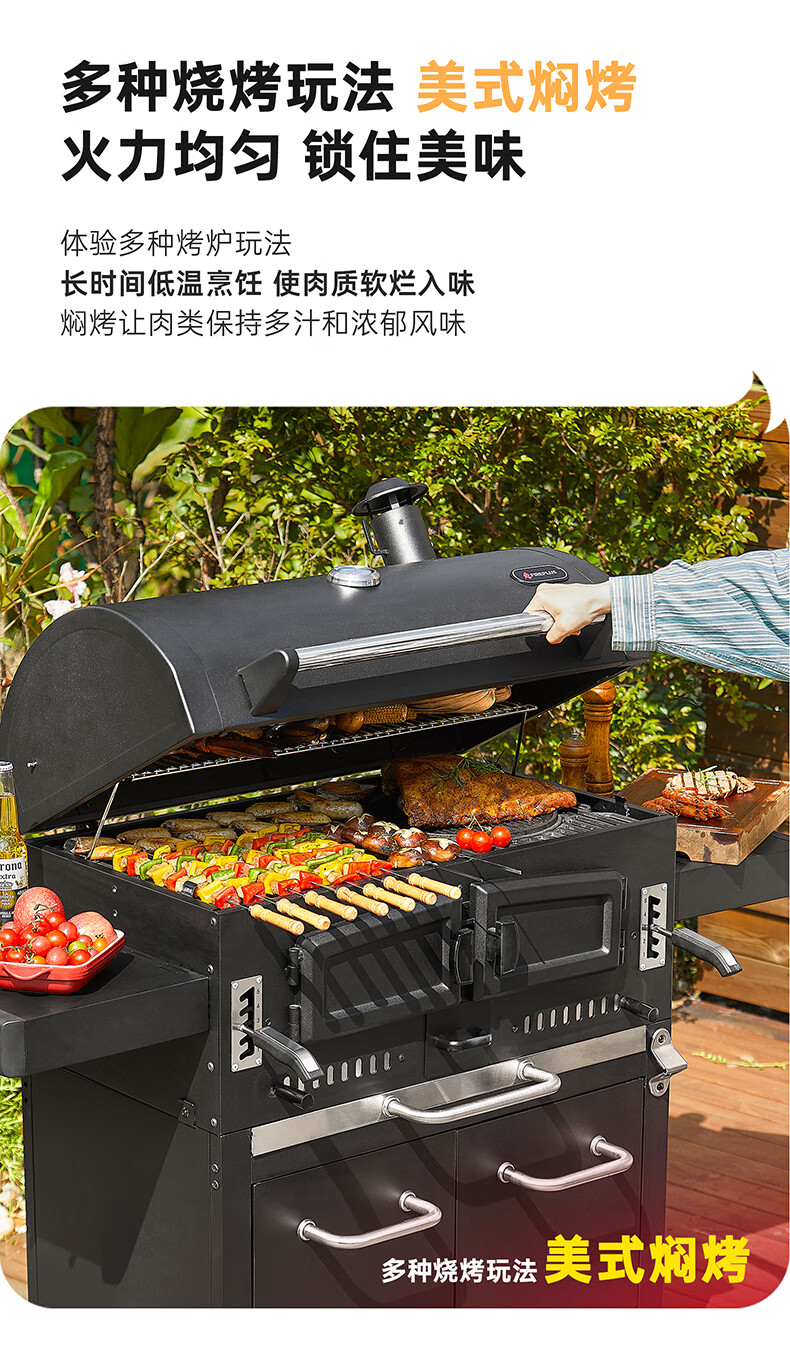 FIREPLUS燃客庭院烧烤炉别墅炭烤炉家用大型户外烤炉美式木炭烧烤架焖烤炉 哈利【烤炉+工具箱+烤支】
