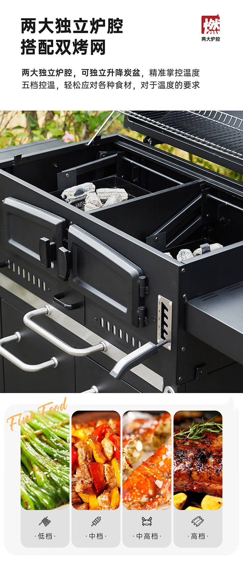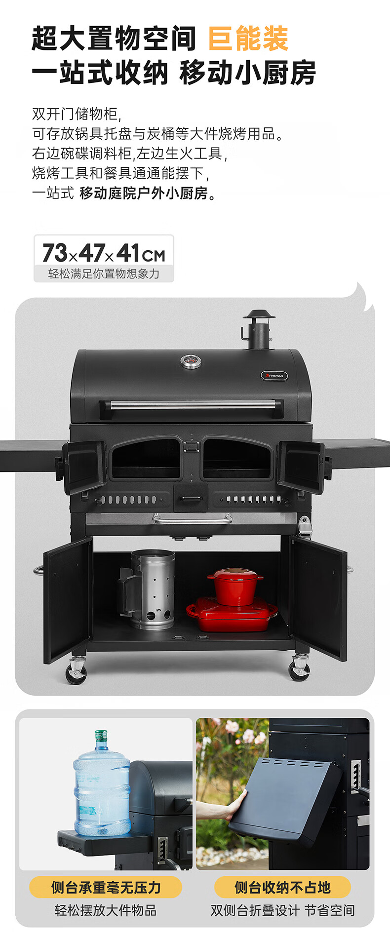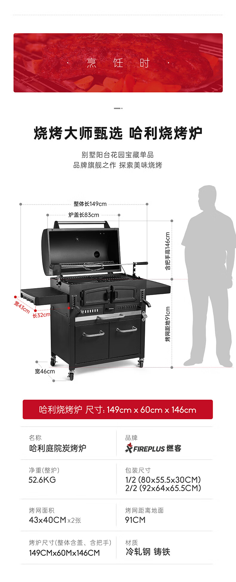 FIREPLUS燃客庭院烧烤炉别墅炭烤炉家用大型户外烤炉美式木炭烧烤架焖烤炉 哈利【烤炉+工具箱+烤支】