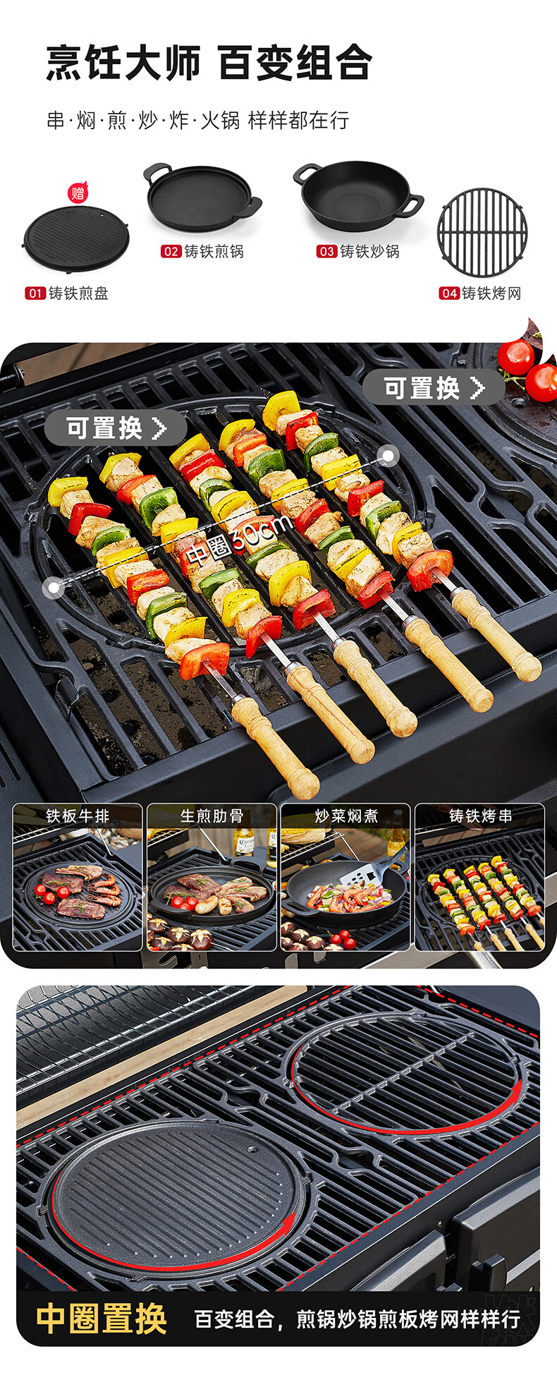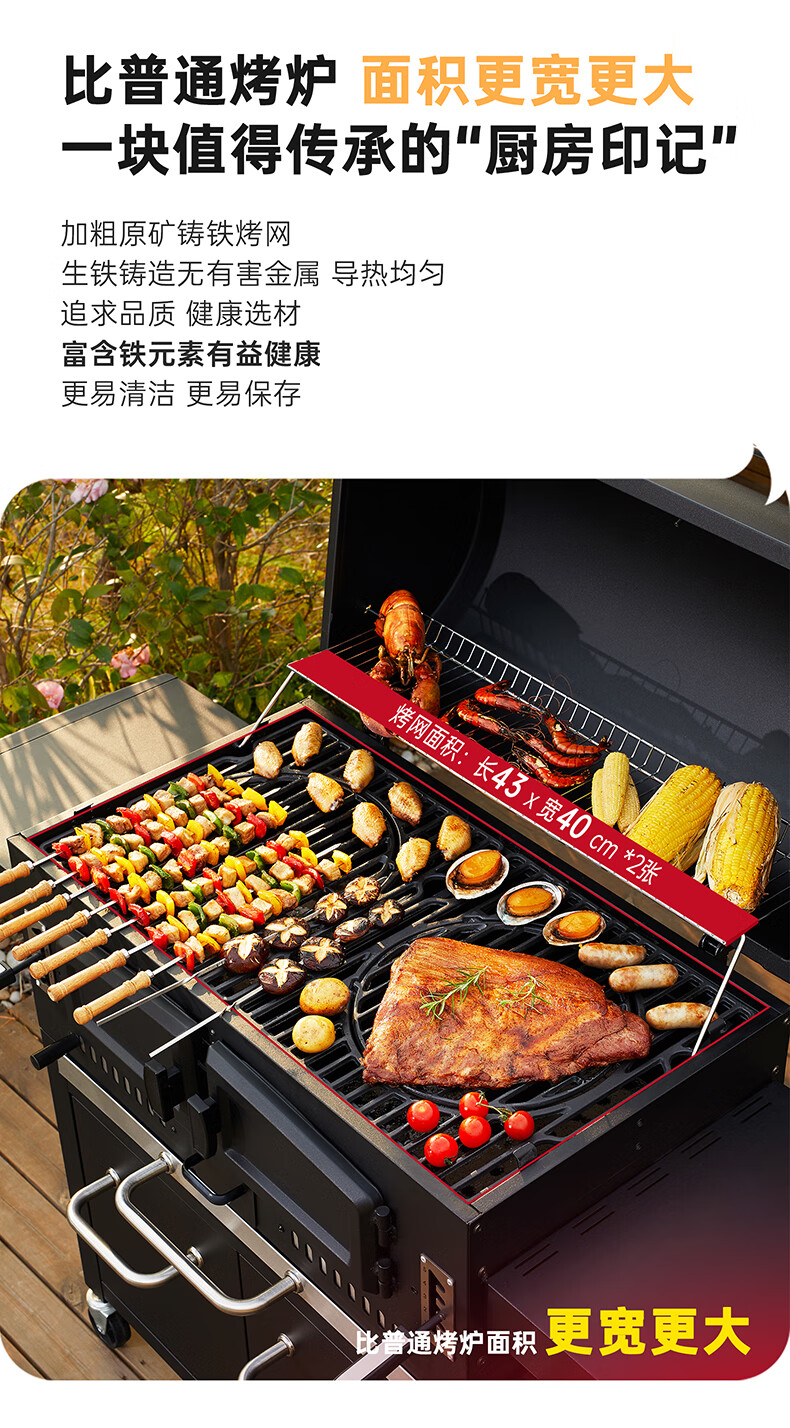 空间大,满足多人烧烤没问题,材质铸铁设计不错的。总体来看很不错