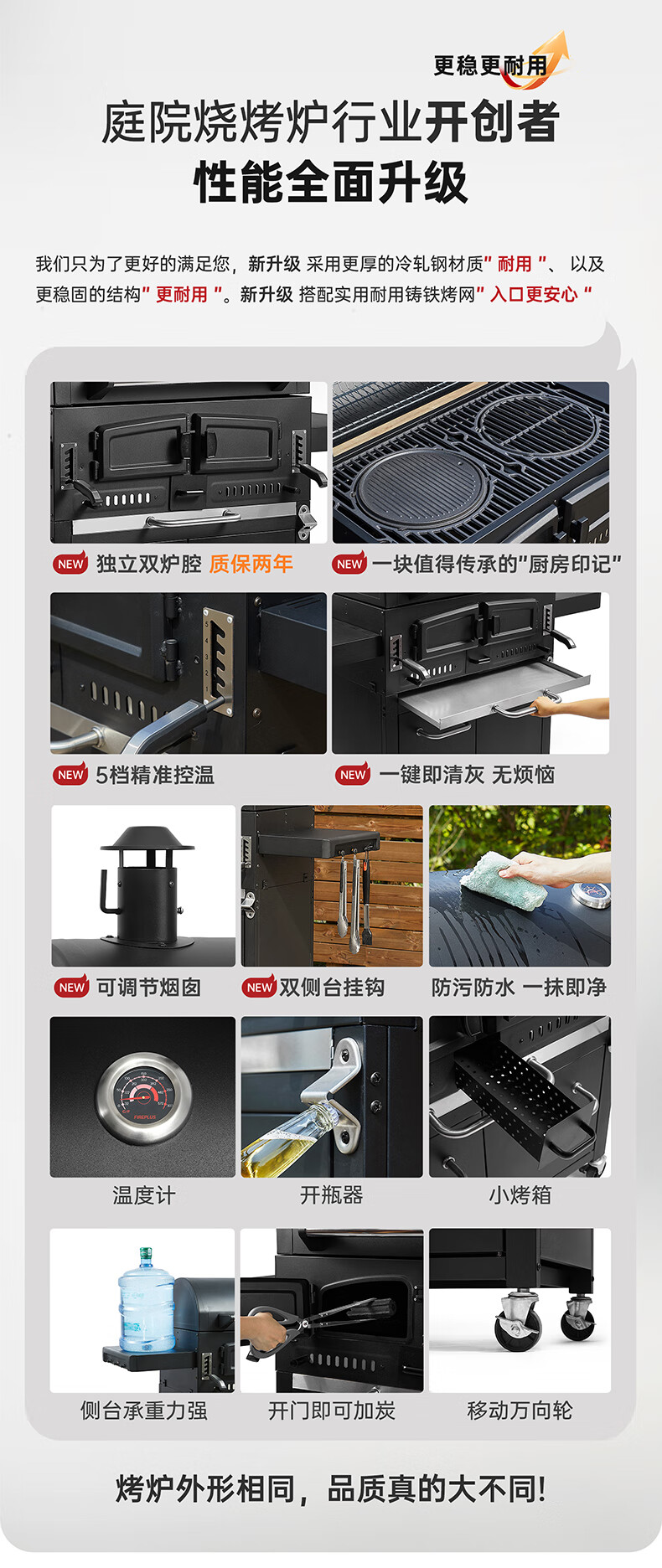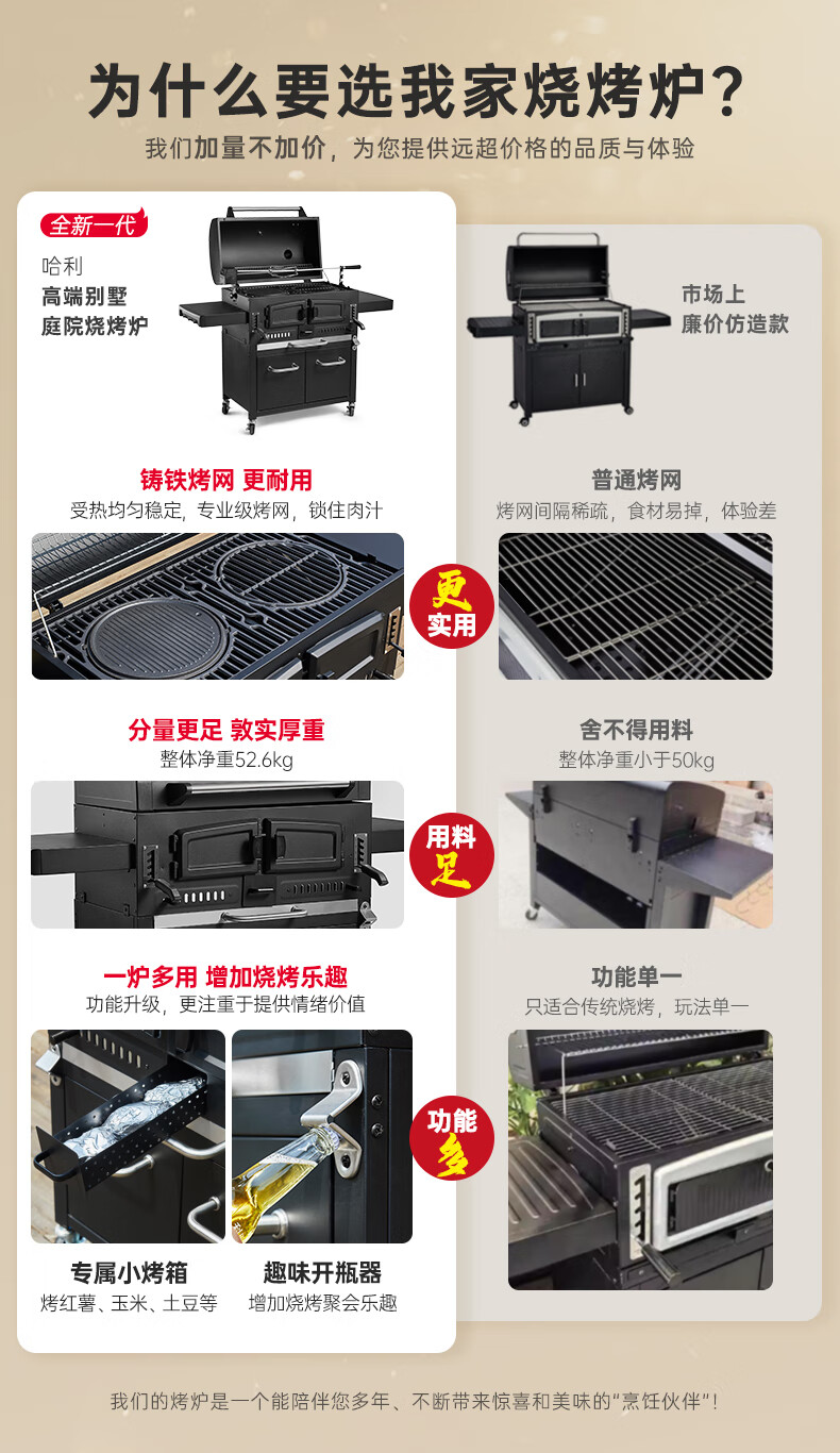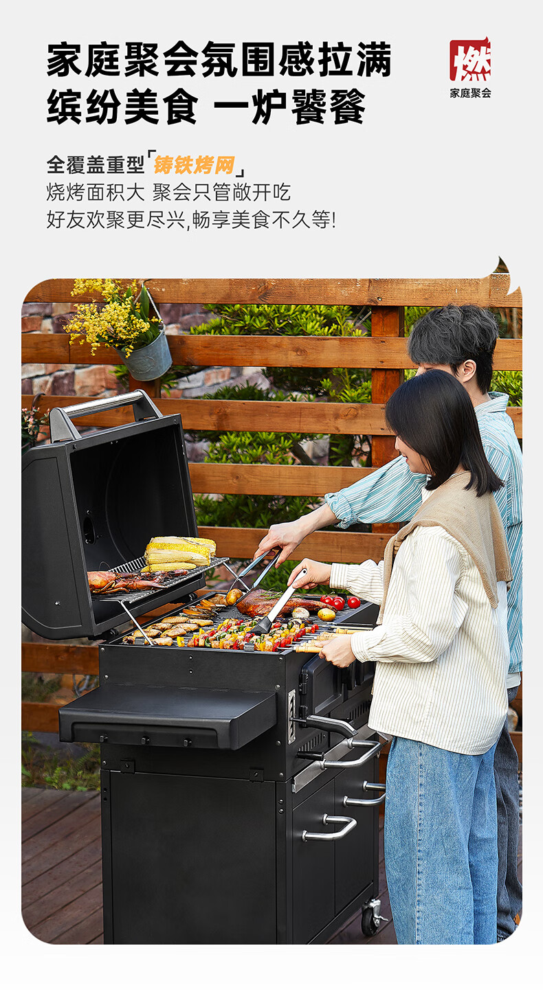 烧烤炉太棒了👏在自家别墅庭院烧烤,受热均匀,它升温迅速,烤肉时间大大缩短,而且烤架高度可以调节,非常人性化,值得推荐!追评再晒图