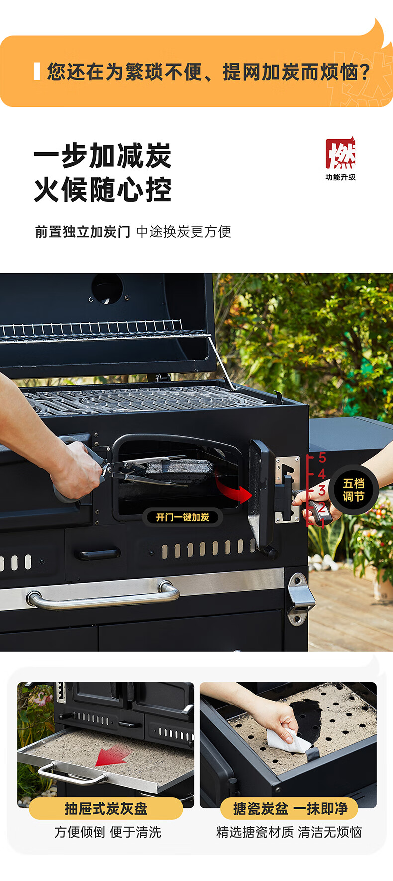 烧烤炉外观精致,细节处理到位。在家里庭院聚会使用,不仅实用,还很美观。烤网容易拆卸清洗,打理起来不费劲,太贴心了!