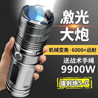 46950手电筒激光炮强光可充电超亮夜行远射大容量疝气灯家用照明 尊享六锂电丨三光T10芯丨加大加容六锂电 礼盒款镭射炮机械变焦合金机身