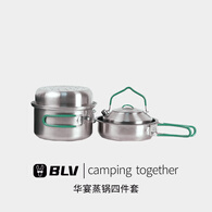 八驴户外304不锈钢套锅烧水壶锅具套装三件套锅具露营装备野餐用品 华宴蒸锅四件套