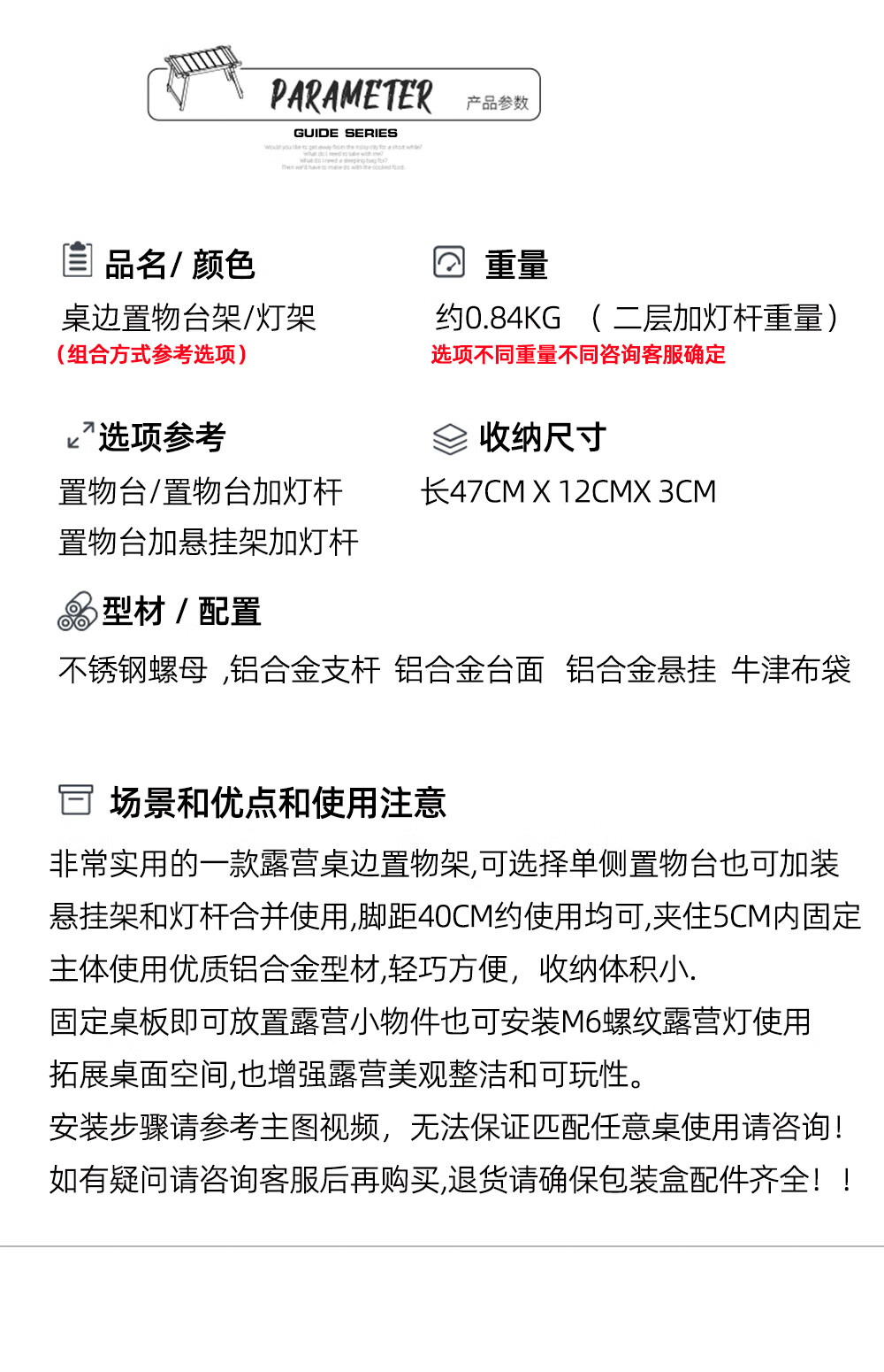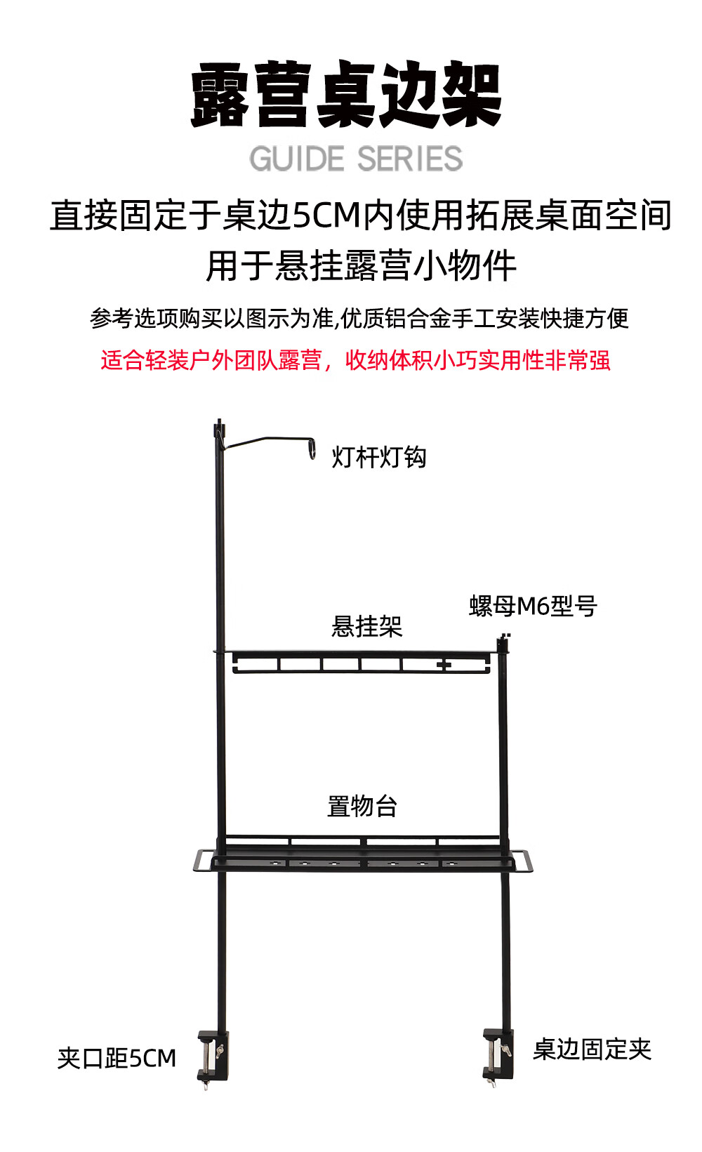 Guide Series户外露营桌折叠野餐桌边配件置物架灯杆悬挂架 GS-T07置物架+悬挂架+灯杆