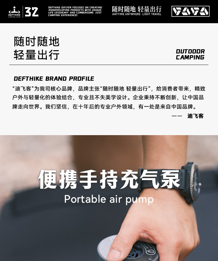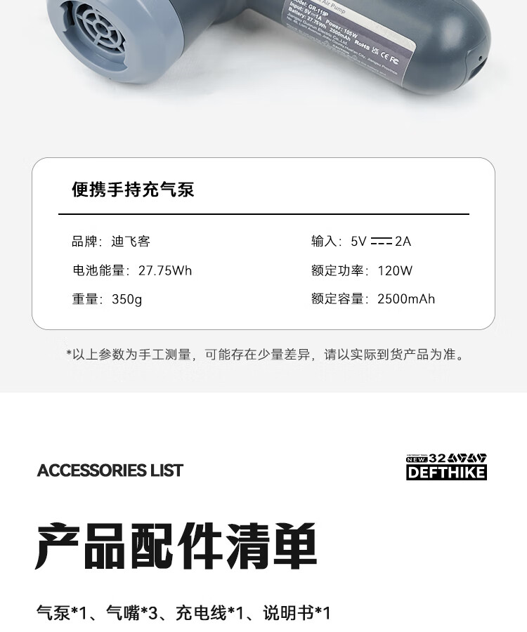 迪飞客/Defthike户外露营气垫床打气配件可反向抽气usb充电手持充气泵 手持充气泵