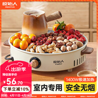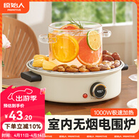 原始人围炉煮茶室内无烟烧烤炉家用室内炉套装电陶炉烧烤炉 【1000w】24.5cm烤网套餐/山茶