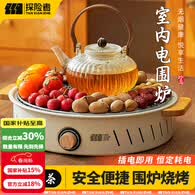 探险者围炉煮茶电围炉套装器具全套取暖炉家用围聚无烟烤火炉烧烤烤肉 电围炉【烤网款】