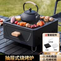 北极狼抽屉炉围炉煮茶碳烤炉户外烧烤炉烤奶茶室内炭烤取暖炉 抽屉炉