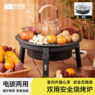 扬子家用围炉煮茶电围炉电烧烤架室内无烟烤火盆煮奶茶罐电煮茶炉子电热炉子烤橘子室内取暖炉 电烤炉 单围炉+烤网 1层