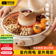 原始人围炉煮茶电碳两用电炉烤火炉套装器具全套电烧烤炉家用围聚烤肉炉 室内推荐-卡其【烤网款】1360W电碳两用 烧坏包换新