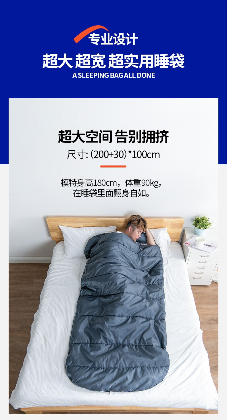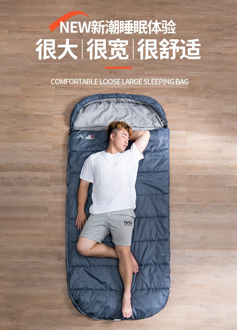 北极狼(BeiJiLang)户外棉睡袋成人加宽四季通用保暖加宽露营便携式办公午休加厚防寒 【加宽100cm】蓝色1.5kg/夏季推荐