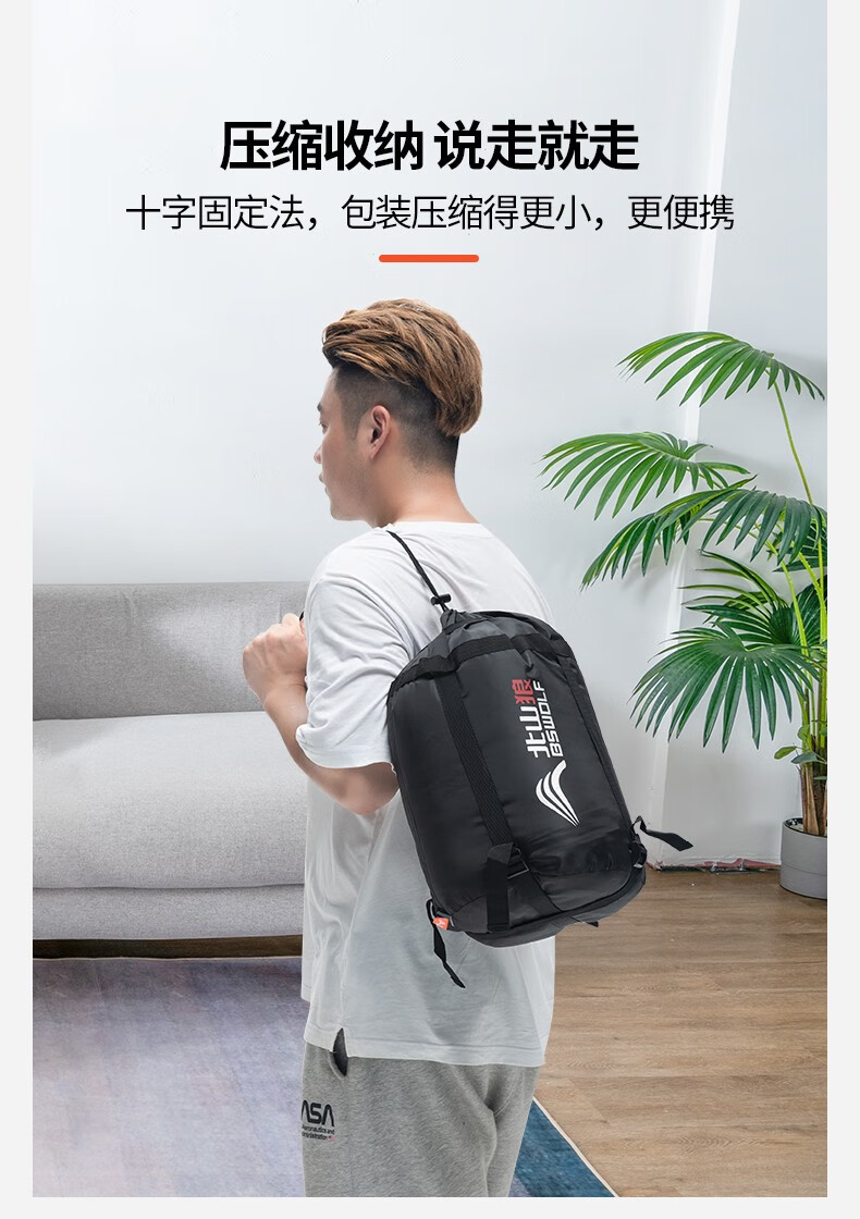 北山狼大码睡袋户外露营四季通用冬季加宽加厚保暖防寒单人大成人 1.5kg灰色送三宝