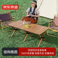 京东京造 户外露营折叠桌 便携蛋卷桌轻量铝合金桌子露营桌椅木纹114.5cm