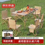 京东京造户外便携桌椅套装 长桌六椅 露营聚会野餐装备 折叠桌椅 沙石色