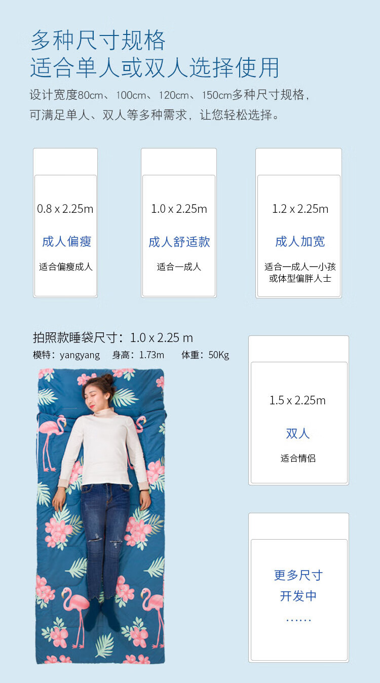 凯路德(KAIROAD) 户外棉睡袋成人四季通用保暖加宽露营便携式办公午休加厚防寒 1350g春秋款-蓝色