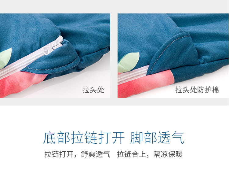 睡袋很好看,面料柔软舒服,去年买了一条,今年再买一条,比一般的儿童睡袋孩子睡在里面活动方便。