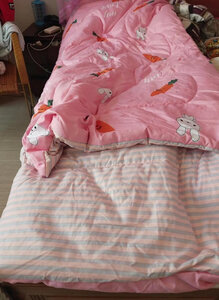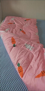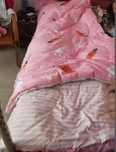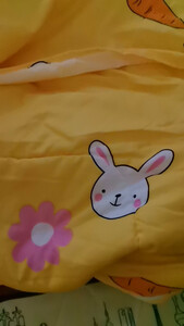 被子外观可爱,实用性很强。黄色的底子,可爱的卡通图片,让人感觉很温馨。虽然只有一层,但是南方冬天盖着也挺暖和的,好评
