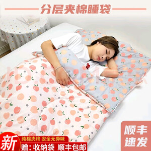 草木犀秋冬厚款夹棉睡袋成人睡袋便携式中大童室内防踢被办公室午休睡袋 厚款100*225cm黄萝卜+卡其条纹