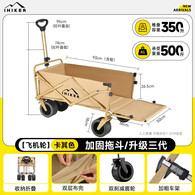 爱山客露营车折叠推车户外装备小推车营地手拉车旅行拖车买菜车拉快递车 350L 卡其色-双刹坦克轮+后开模式