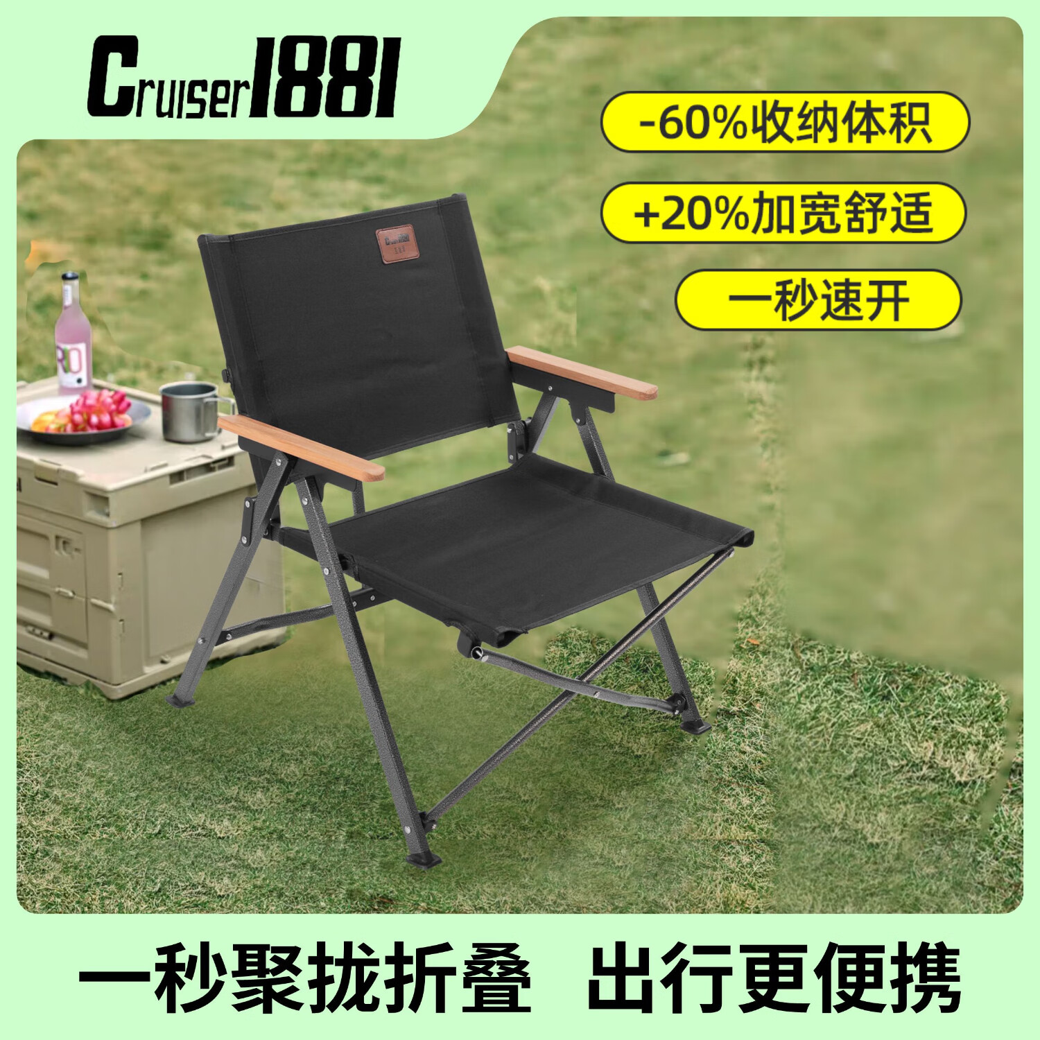 暴走怪兽户外折叠椅子便携式克米特椅收纳聚拢钓鱼凳露营椅野餐椅 【冬竹青】升级聚拢版+榉木扶手