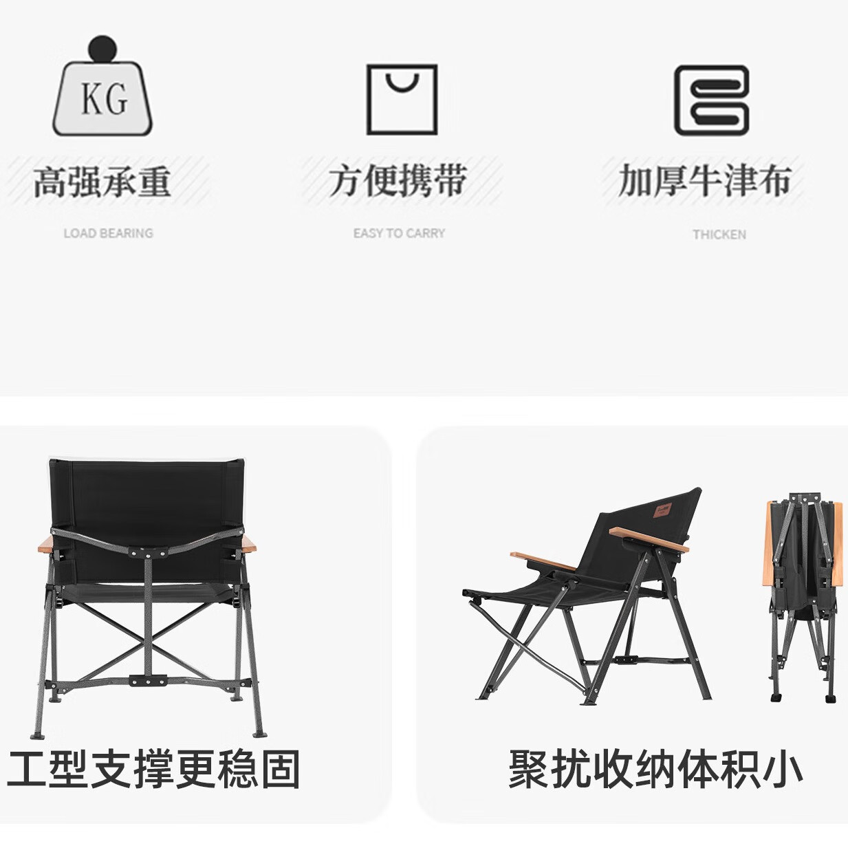 山扉云绮 户外折叠椅全铝合金克米特椅阳台休闲超轻便携式露营椅 黑