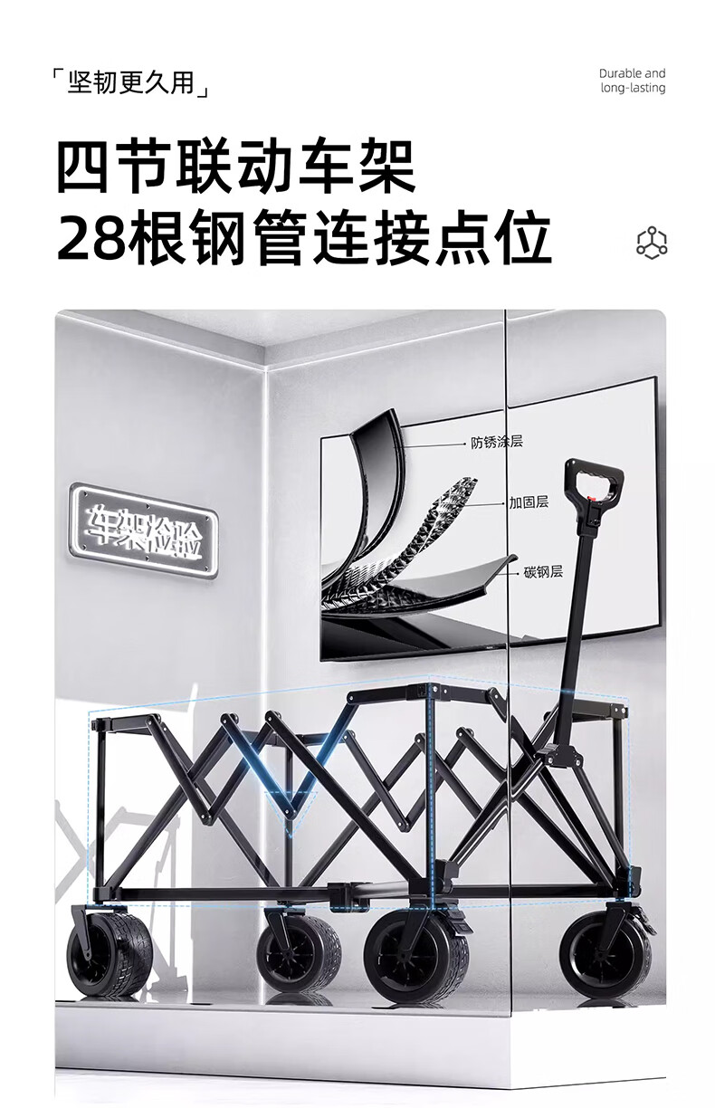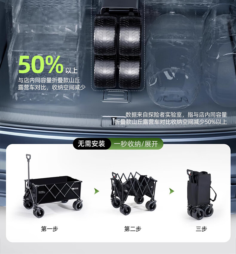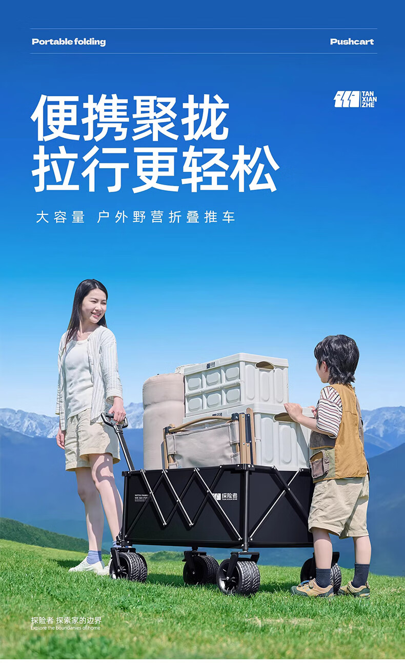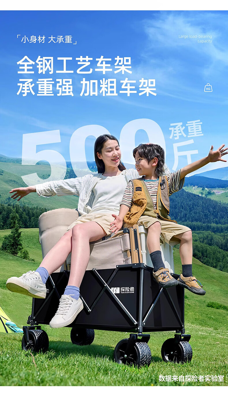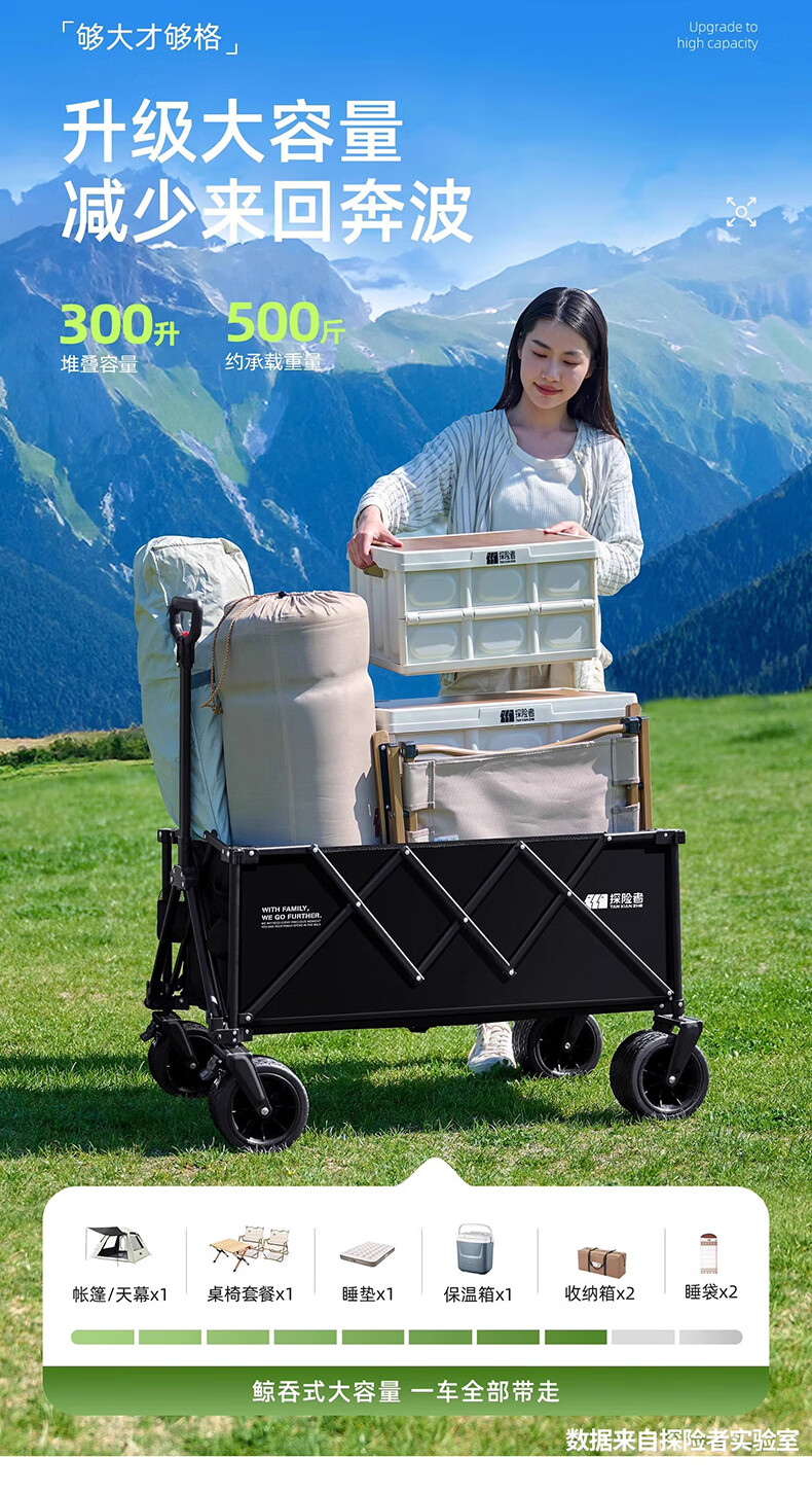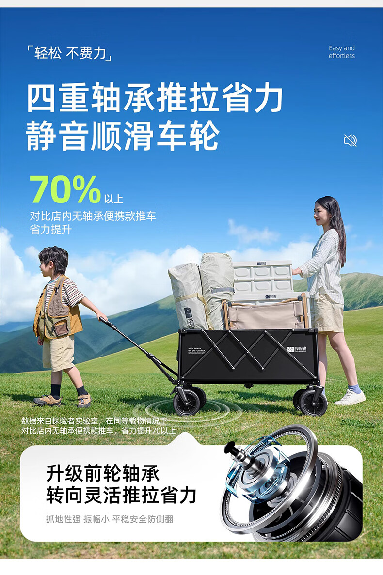 营地车推起来轻便 顺畅,承重大,也够结实,收纳简单,省了许多力气,是露营的好帮手。