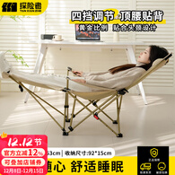 探险者折叠椅户外躺椅便携式单人靠背露营椅子休闲椅扶手椅折叠午睡床 卡其-加长脚垫躺椅【四挡调节】