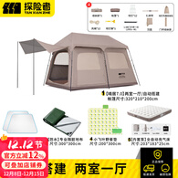 探险者帐篷户外露营帐篷野营过夜防雨全自动速开两室一厅装备全套天幕 晴居【两室一厅】+双垫+地席+自动充气床
