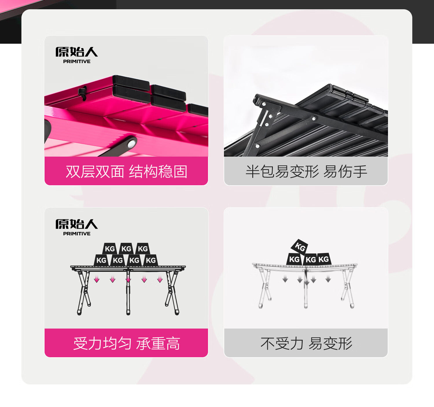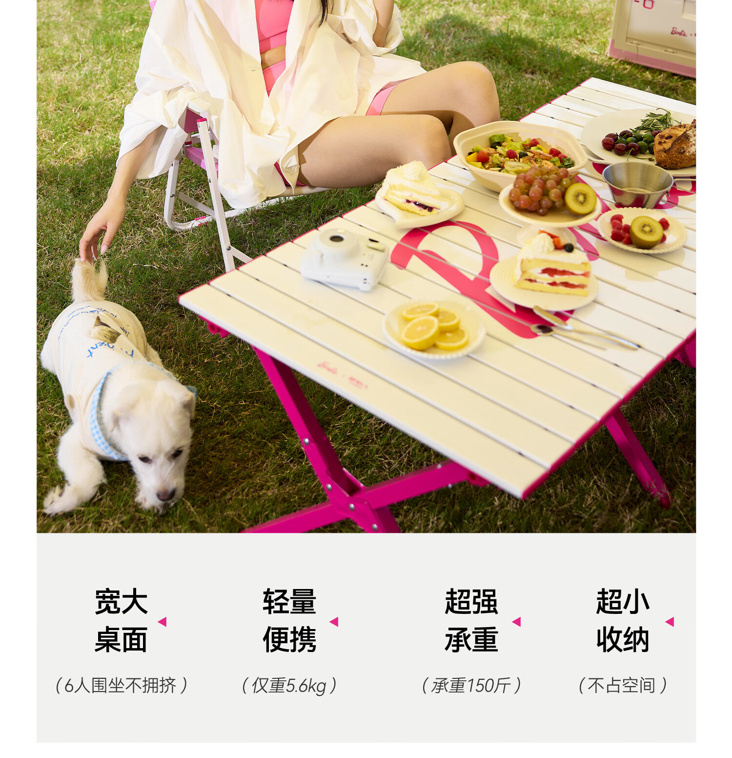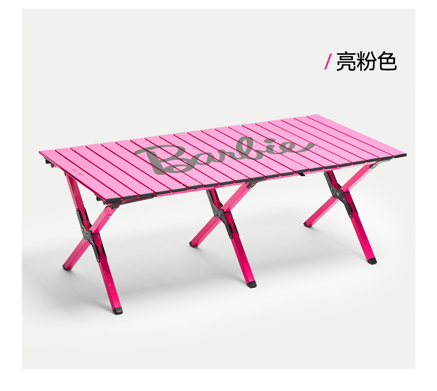 原始人芭比露营桌椅铝合金蛋卷桌户外折叠桌便携桌子野餐全套装备 【亮粉】铝桌+月亮椅*4+推车