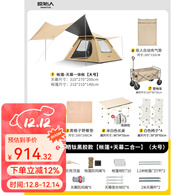 原始人帐篷户外折叠便捷式天幕一体自动露营防晒野外野营装备全套 【冷钛黑胶天幕帐篷.大号】套餐四