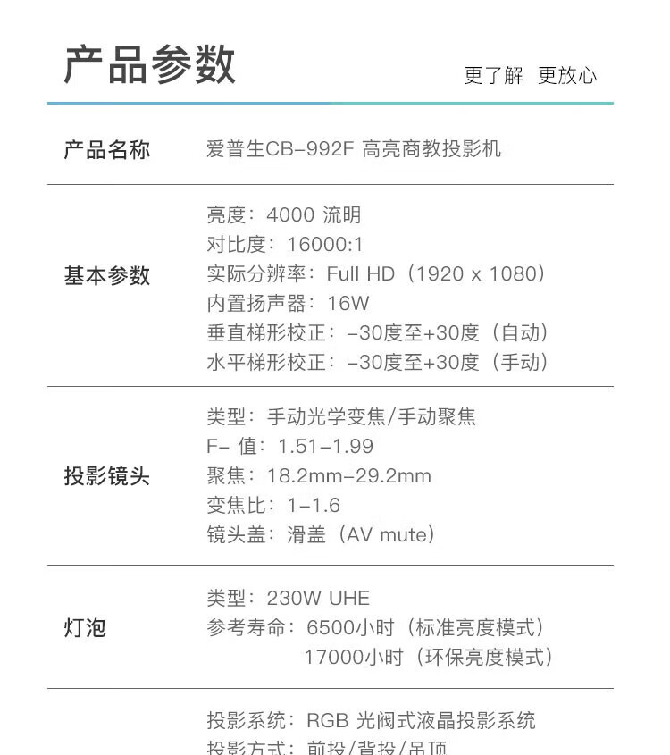 爱普生(epson)CB-992F专业商教投影机商务办公教学投影仪4000流明