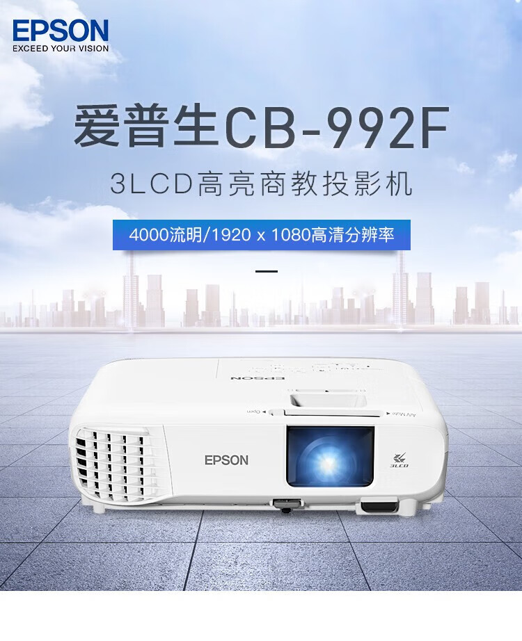 爱普生(EPSON)全新正品国行投影仪 投影机 办公家用 项目投影机 CB-992F(4000流明 1080P)