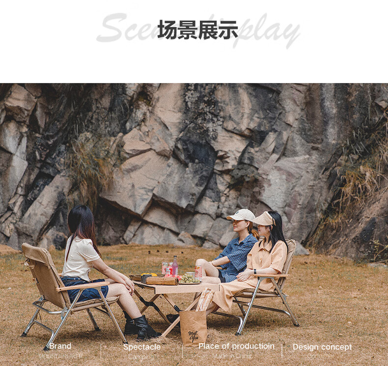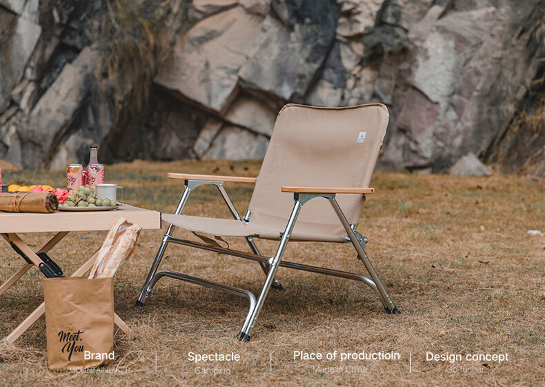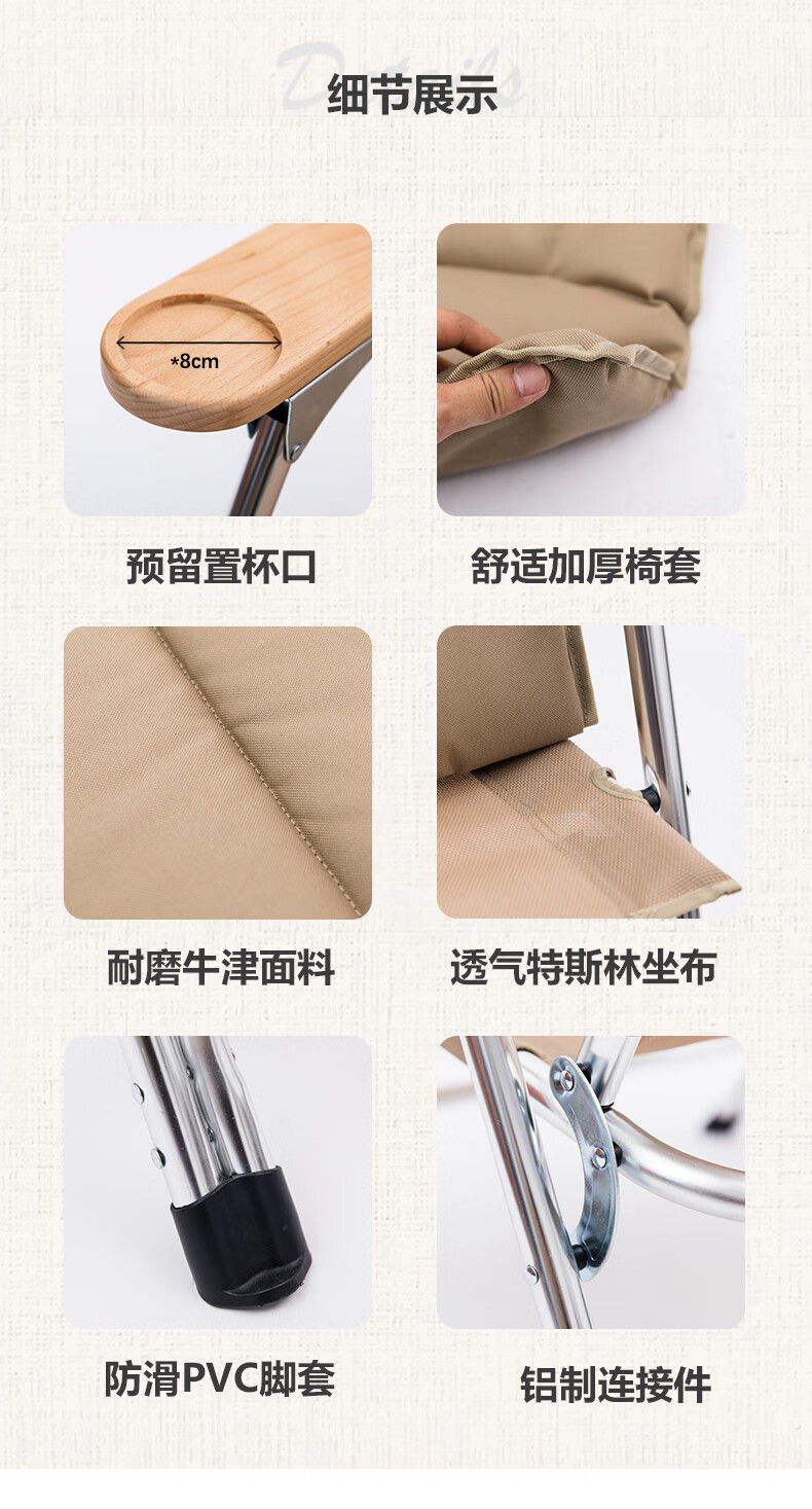 山之客(MOUNTHIKER)户外露营铝合金扶手椅折叠式可收纳椅子折叠椅躺椅野餐可调节钓鱼 扶手椅卡其色