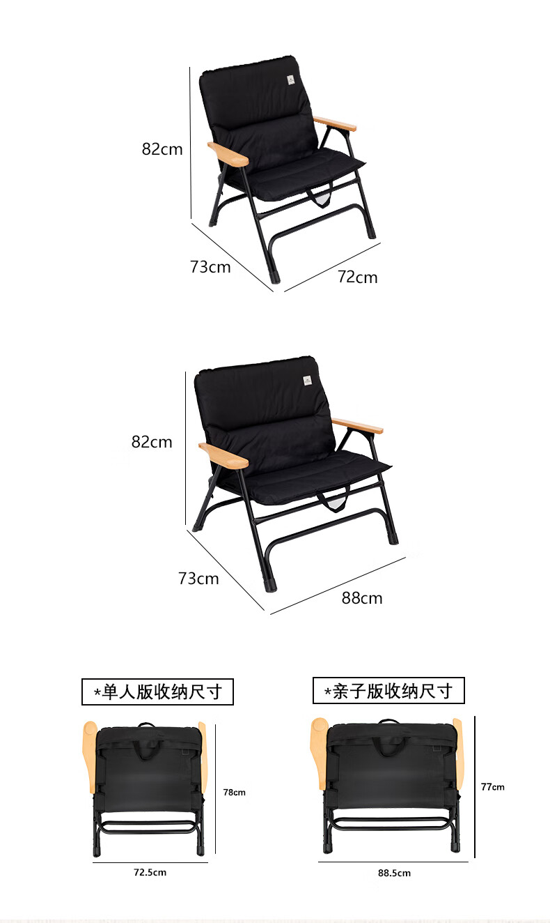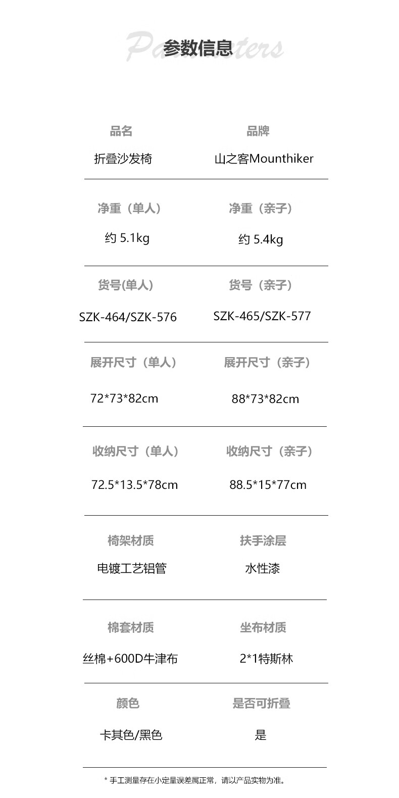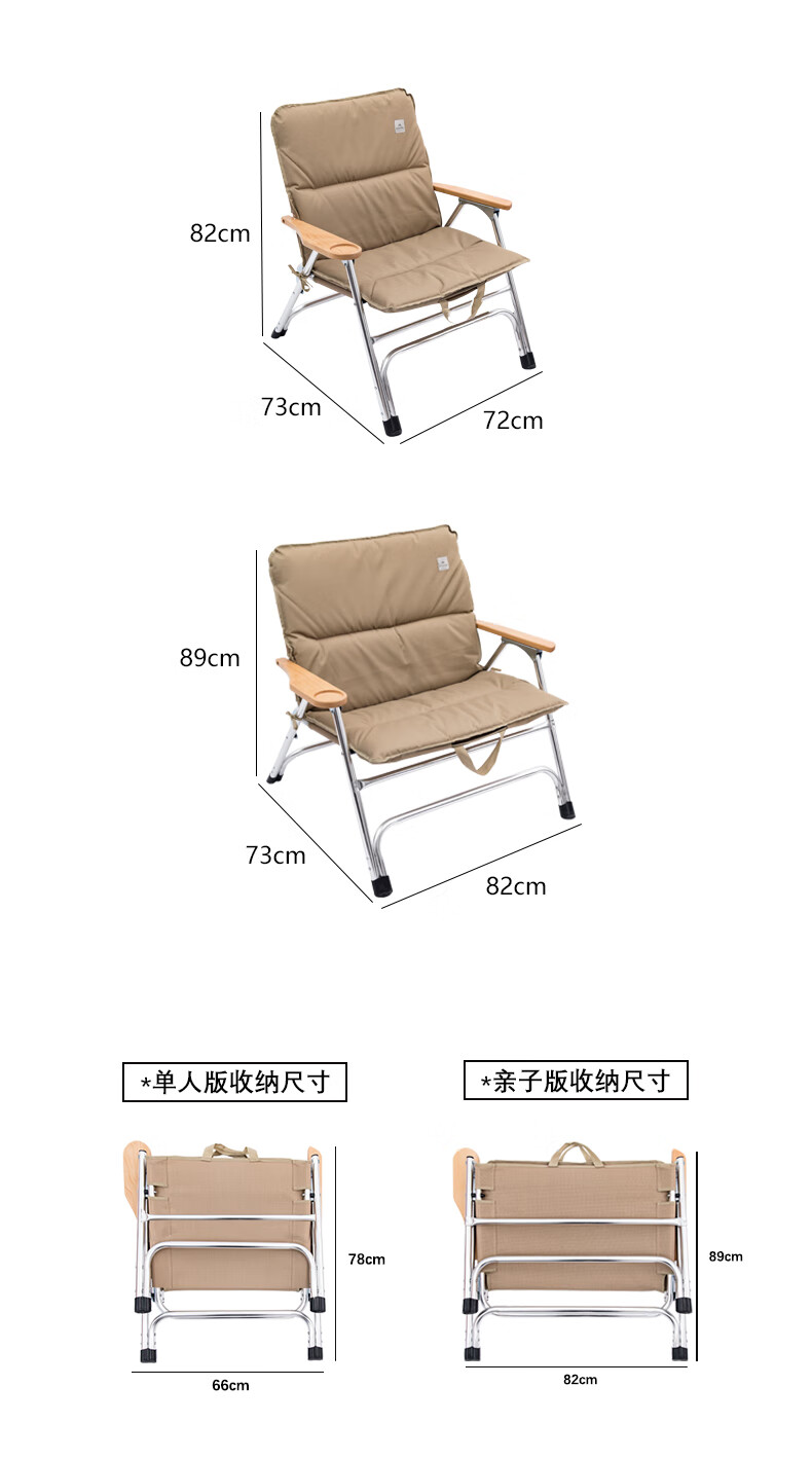 山之客(MOUNTHIKER)户外露营沙发椅可折叠便携式单人宽版座椅双人椅子沙滩亲子椅 亲子沙发椅卡其色