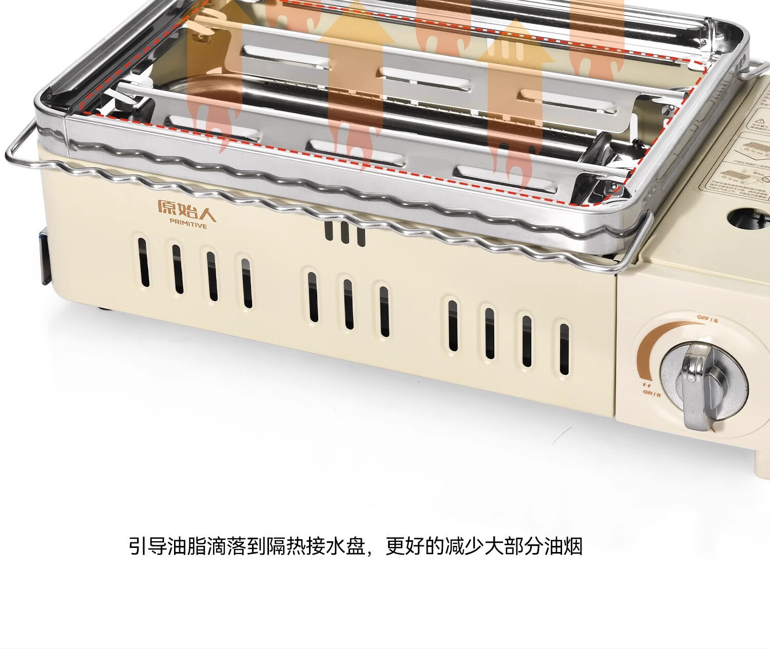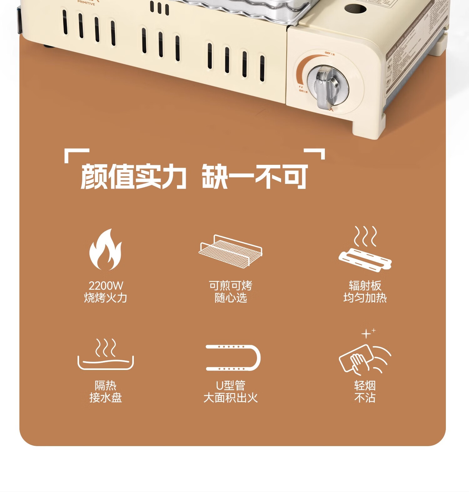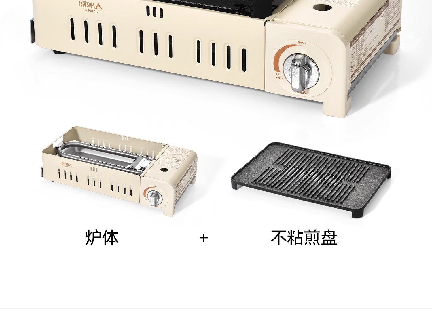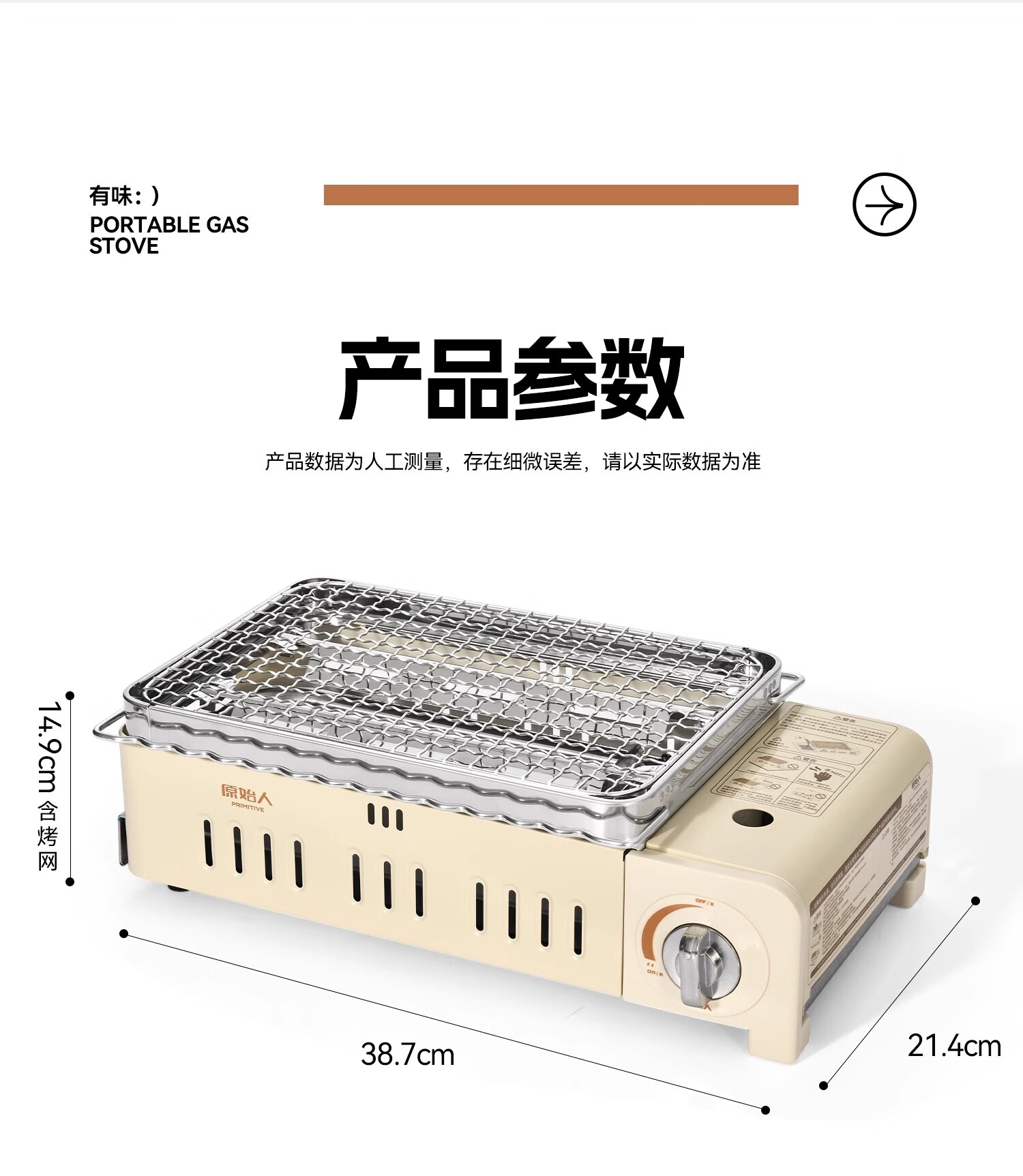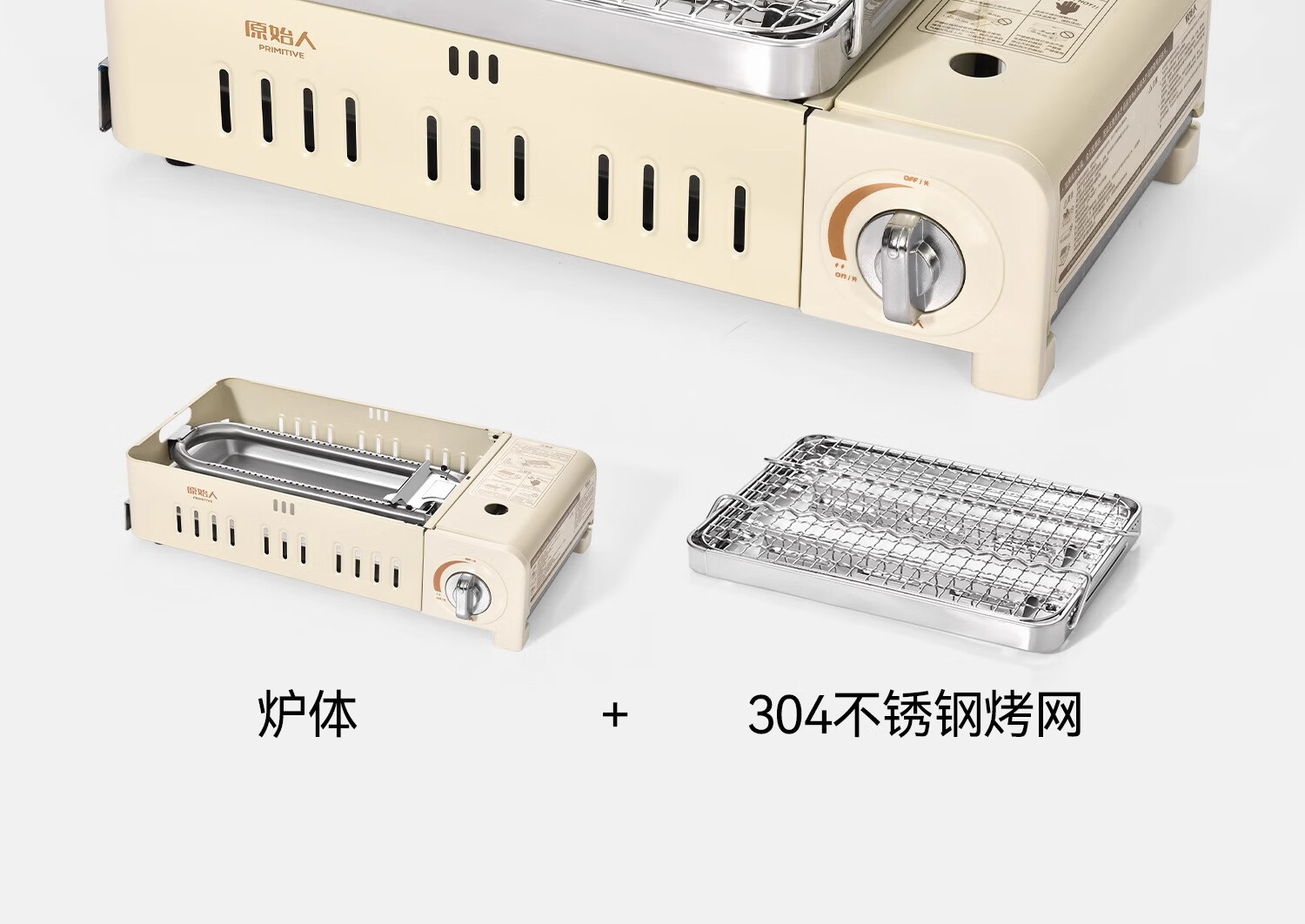 原始人卡式炉户外便携烧烤炉多功能烤网烤架家用野炊烤肉烤串炉具 米白款卡式炉【烧烤套餐】