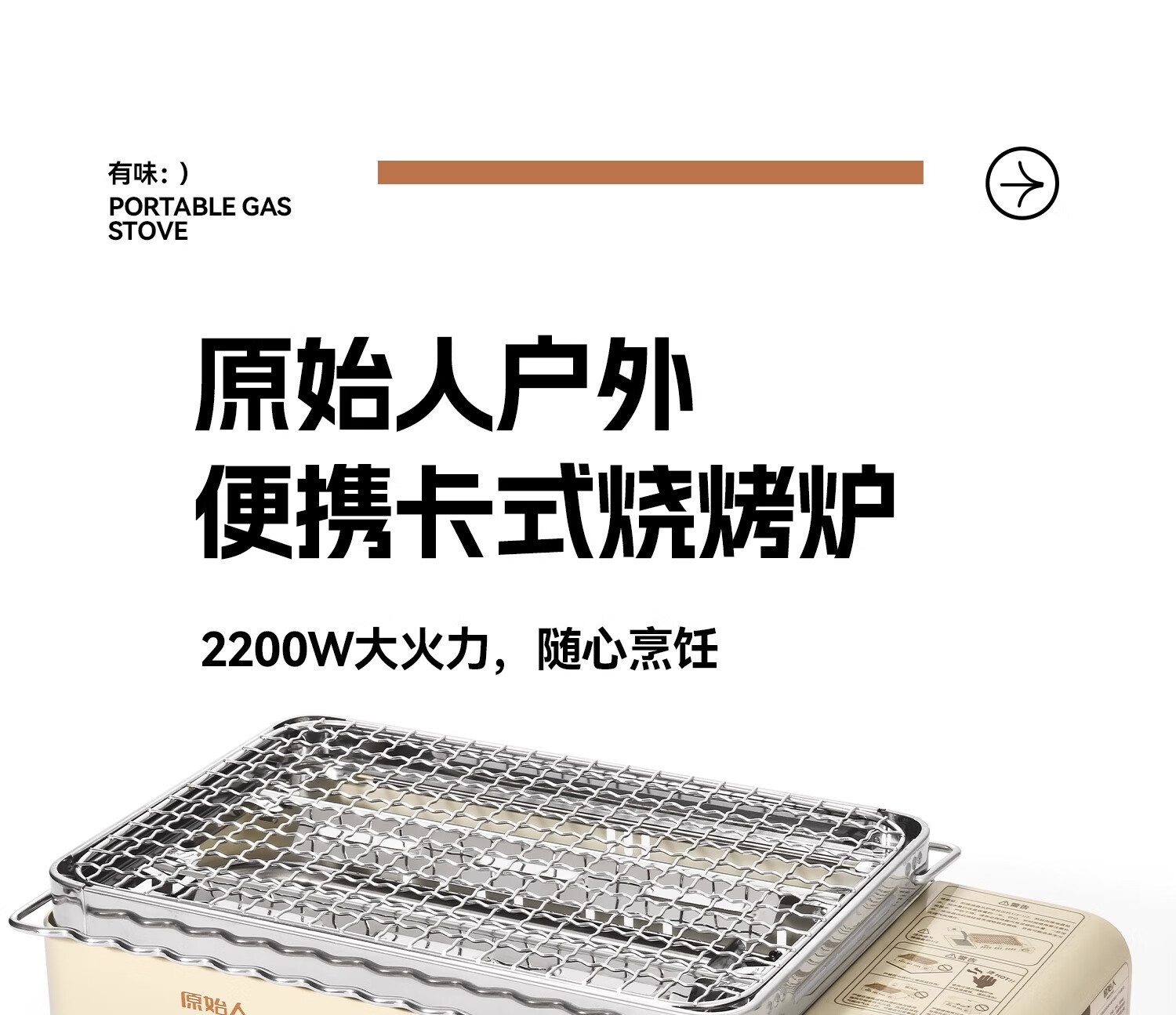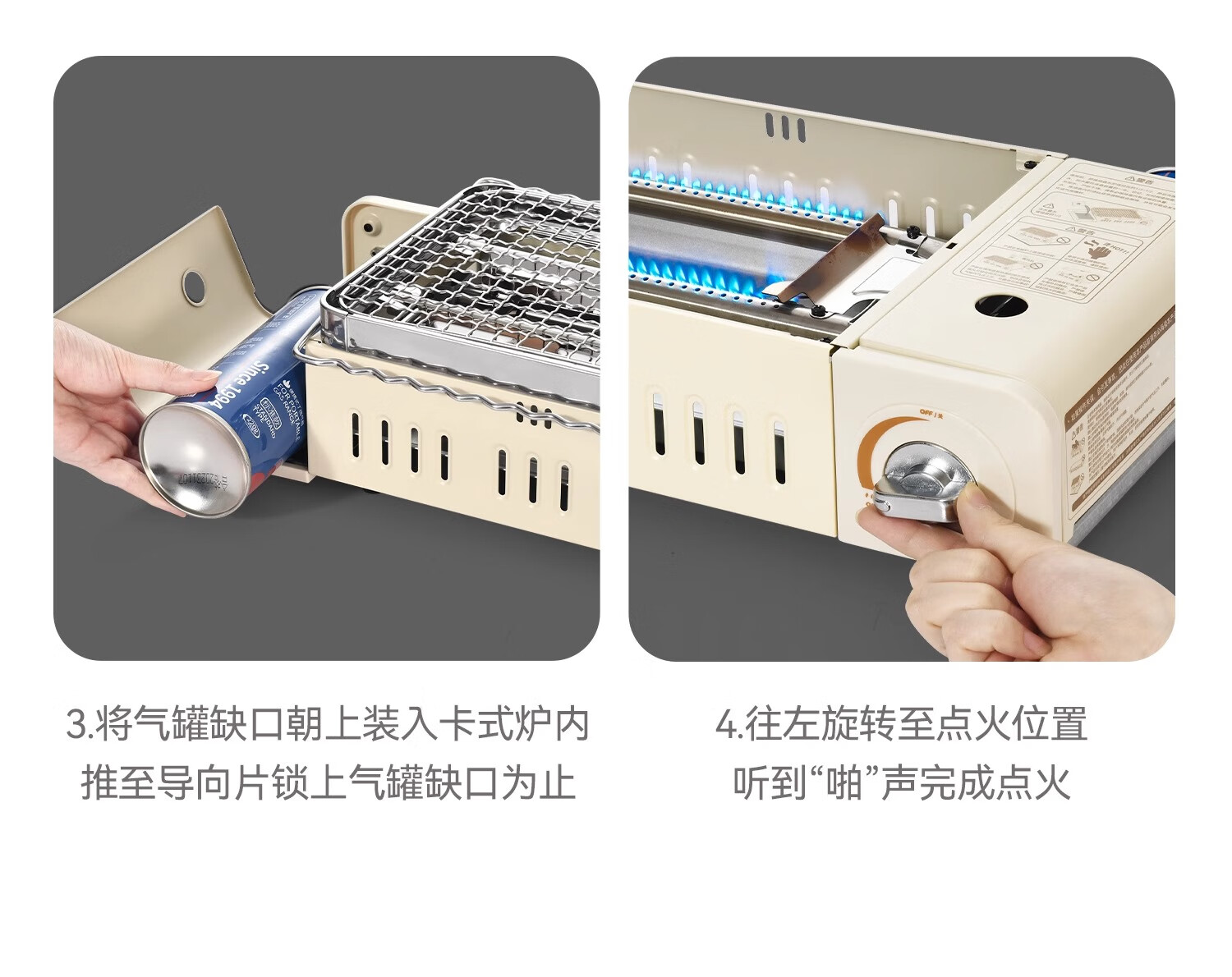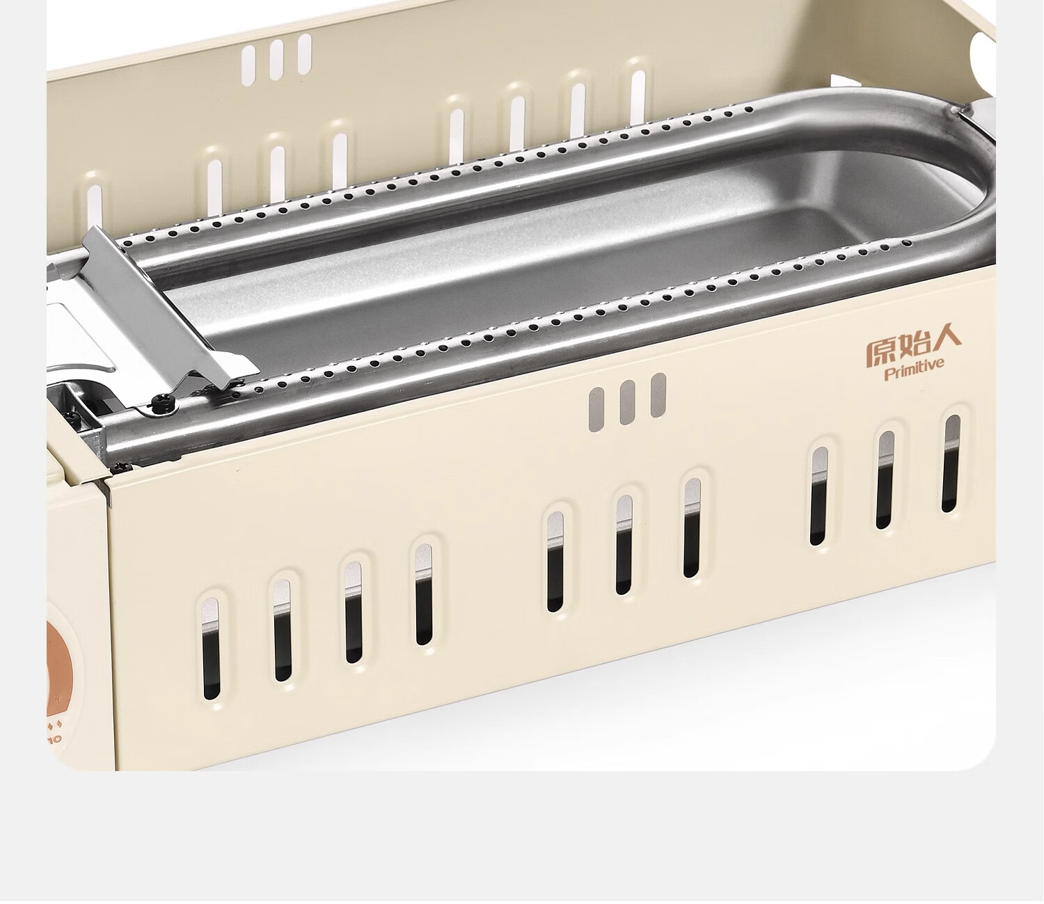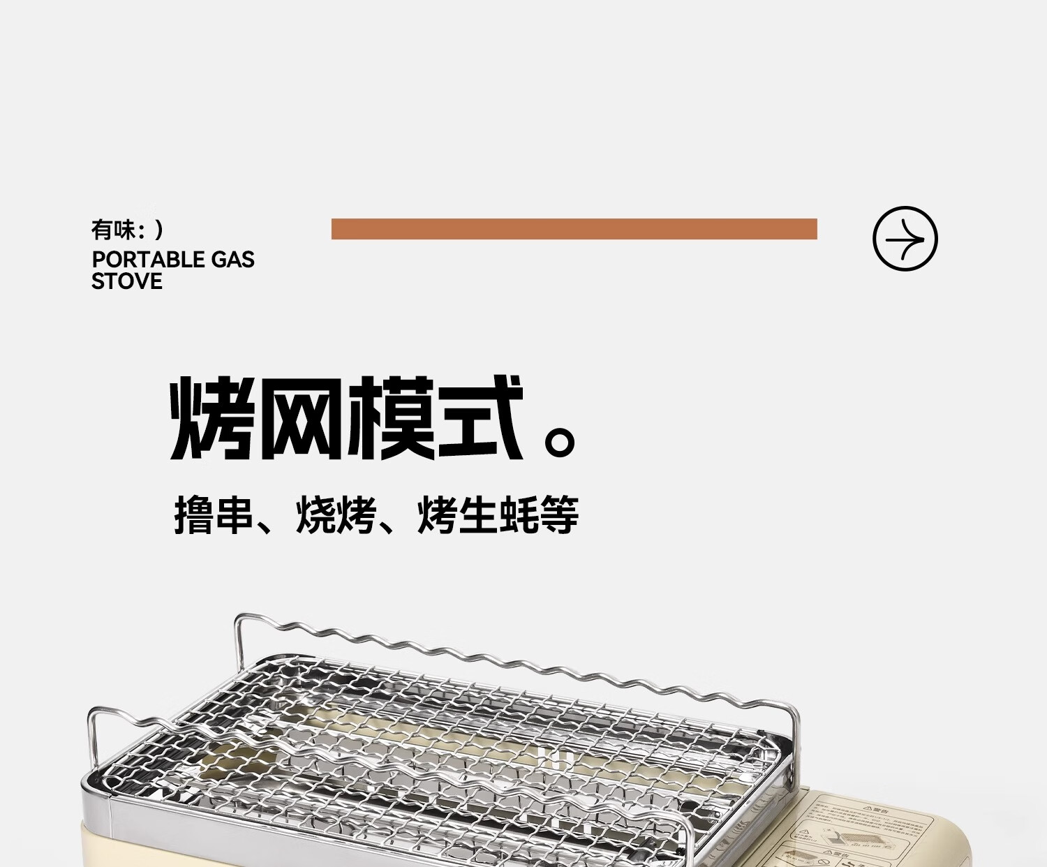 原始人卡式炉户外便携烧烤炉多功能烤网烤架家用野炊烤肉烤串炉具 米白款卡式炉【烧烤套餐】