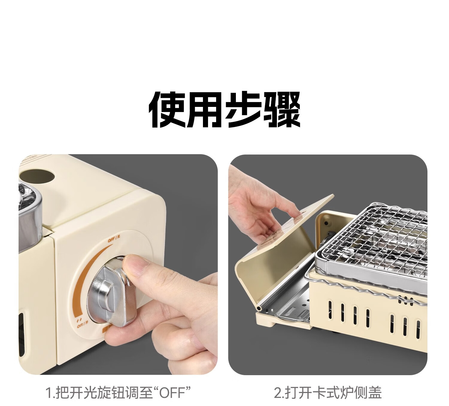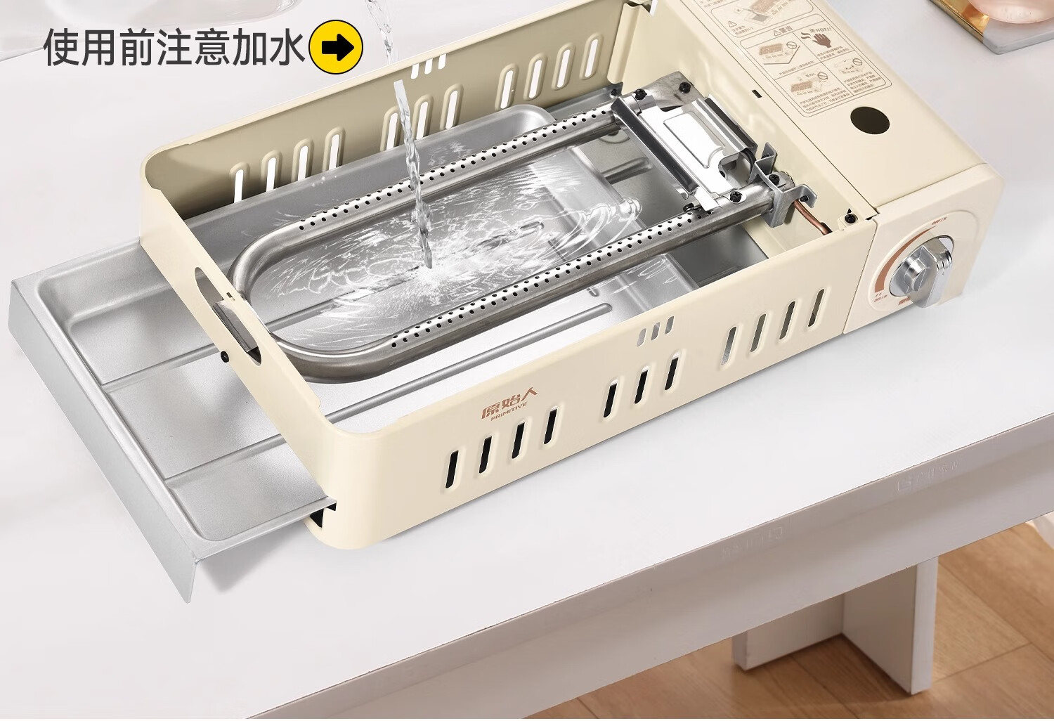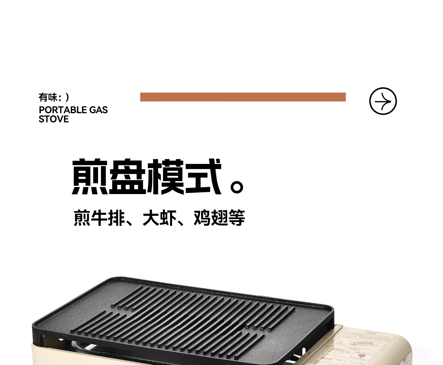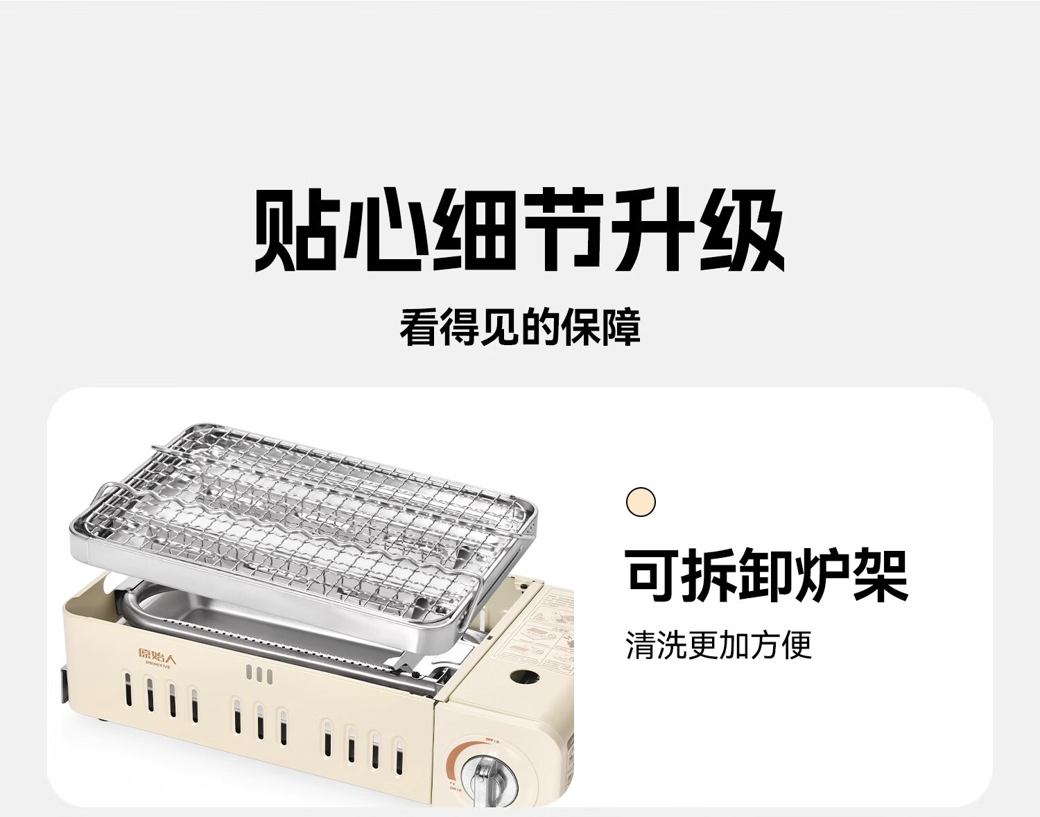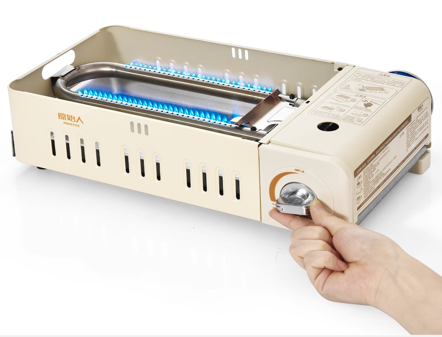 原始人卡式炉户外便携烧烤炉多功能烤网烤架家用野炊烤肉烤串炉具 米白款卡式炉【烧烤套餐】