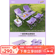 原始人蛋卷桌露营桌椅户外折叠便携式野餐全套装备新款桌椅套装野营摆摊 120cm薄雾紫+经典款月亮椅*4